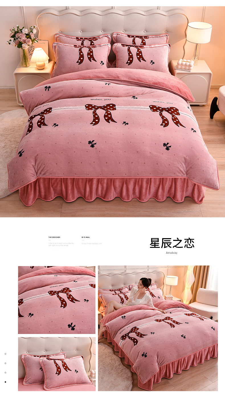 (总)绒宴家纺 2025新款印花小清新牛奶绒花边款四件套,爱心派对【花边款】,暗香【花边款】,初遇【花边款】,蝶梦【花边款】,萌萌熊【花边款】,时光【花边款】,似水流年【花边款】,星辰之恋【花边款】,约定【花边款】