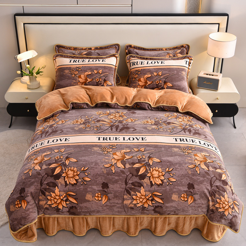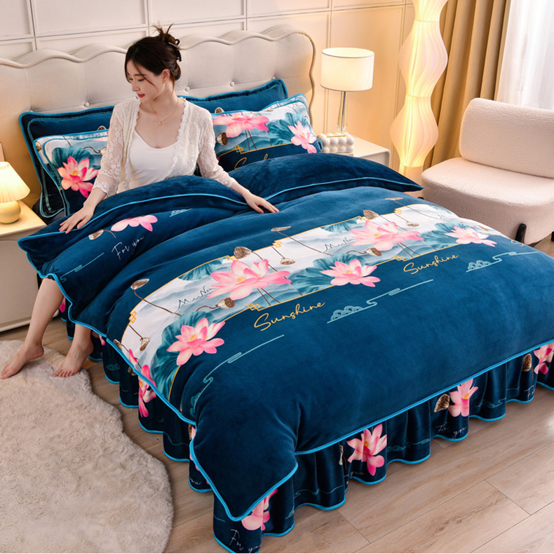 (总)绒宴 2025新款8.5斤牛奶绒金貂法莱绒床裙款保暖四件套