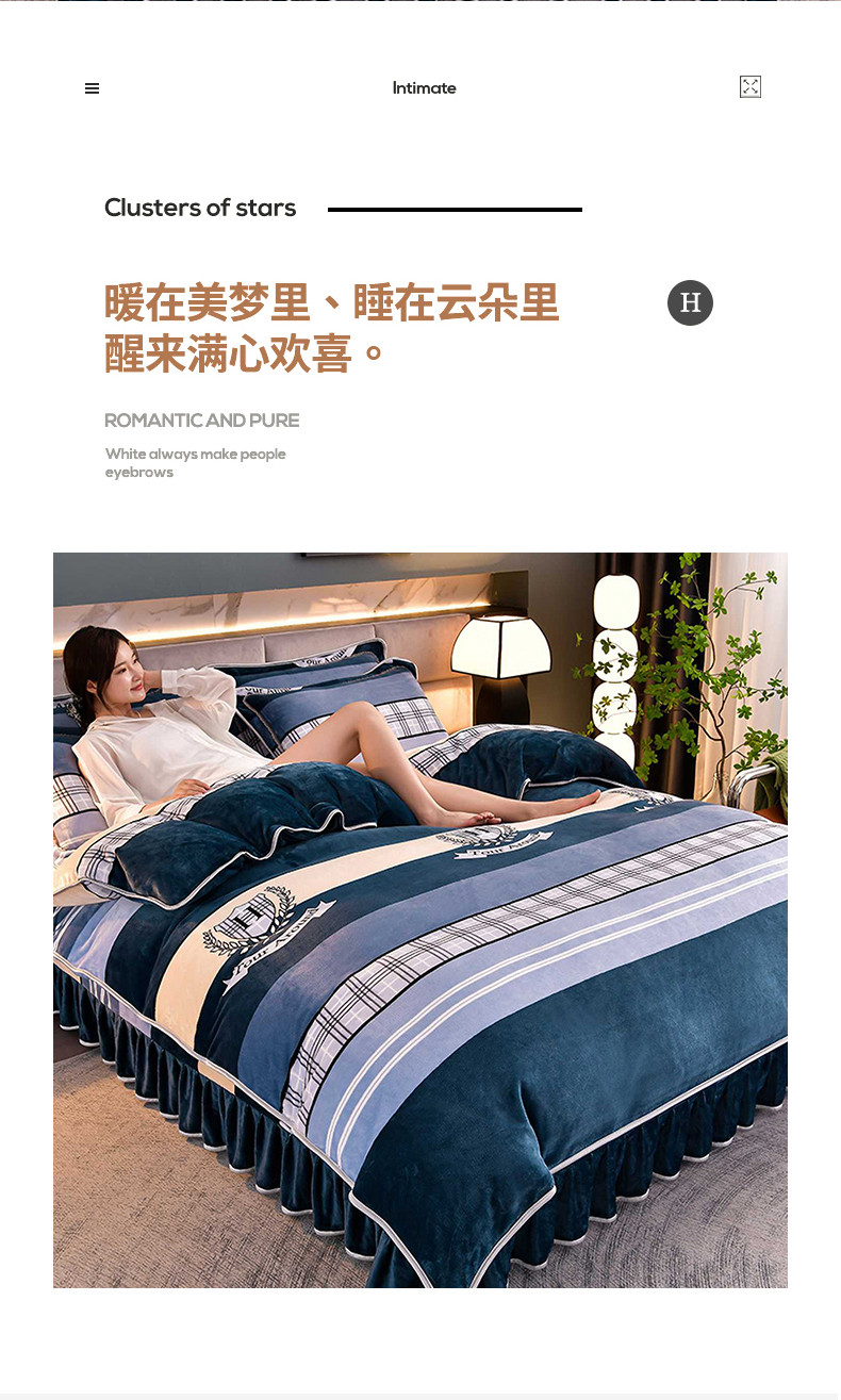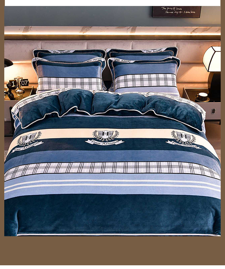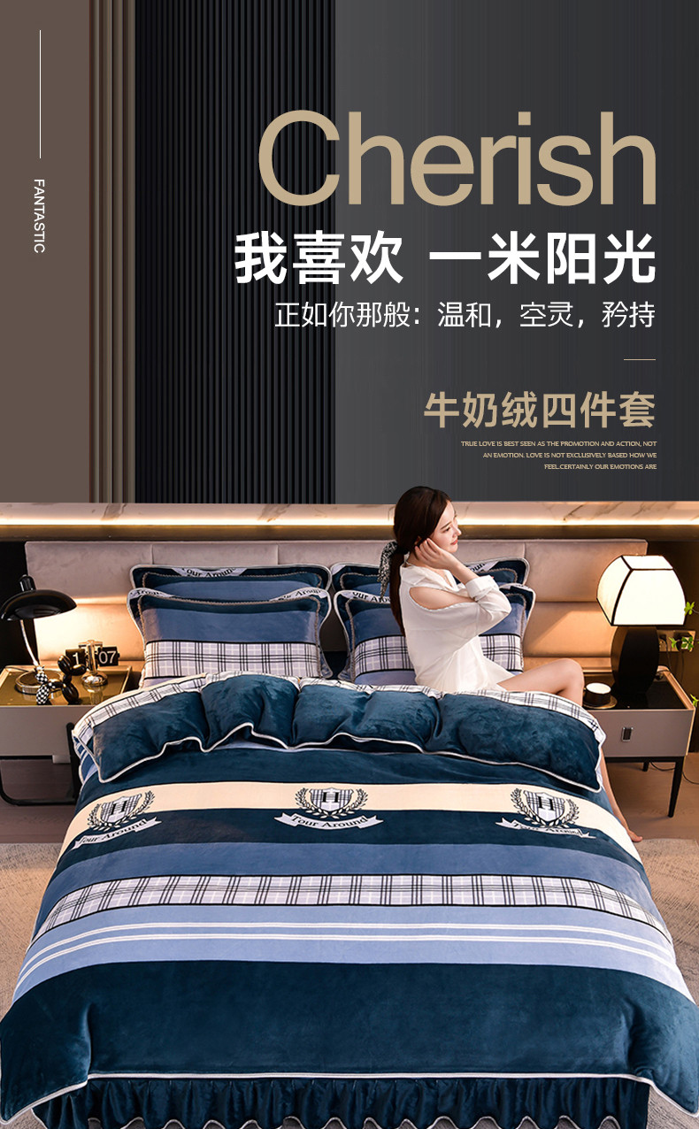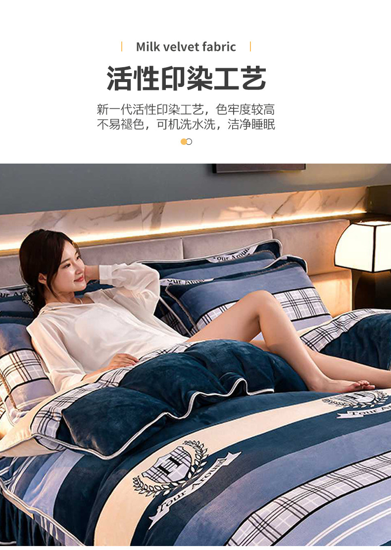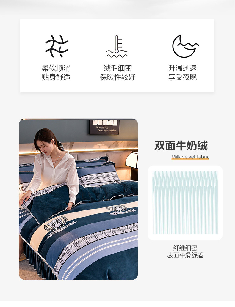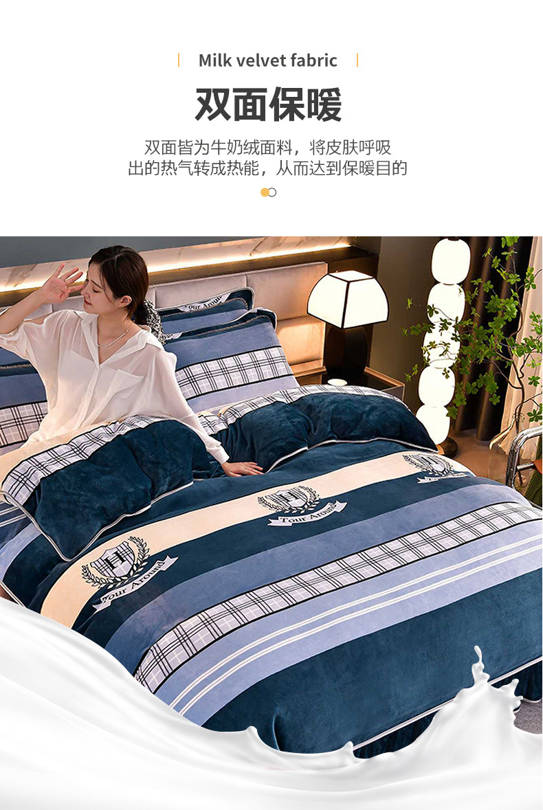 商品名称:绒宴 2025新款牛奶绒四件套 时尚之约-蓝