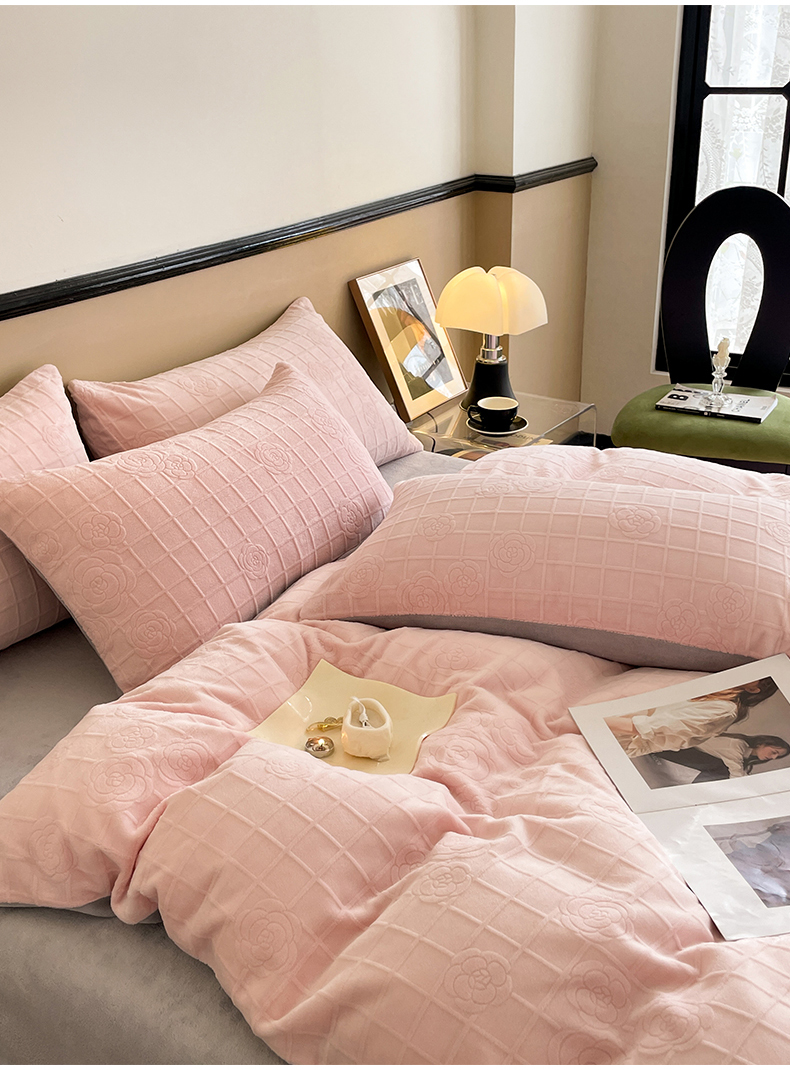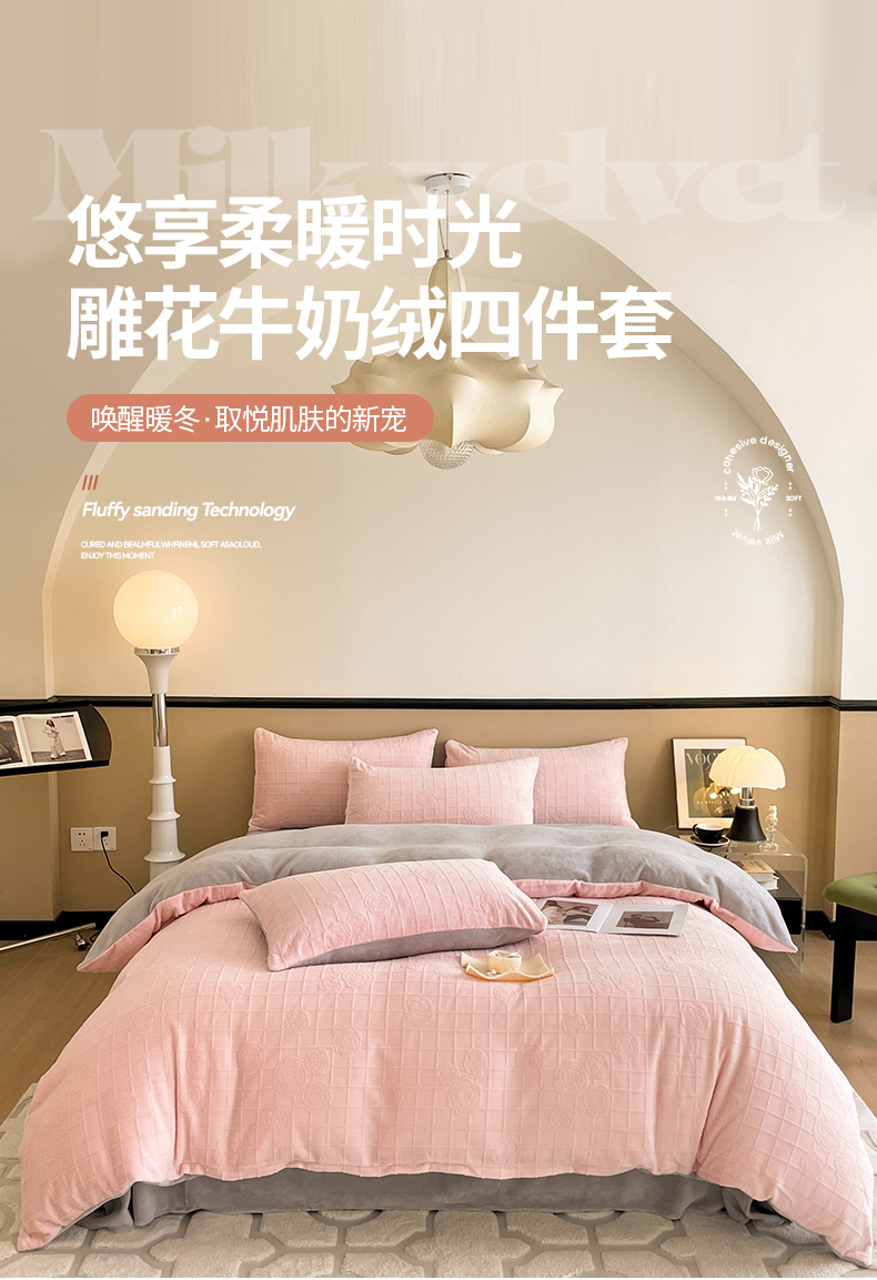 澳梵 2023新款雕花牛奶绒四件套 浪漫花都-粉