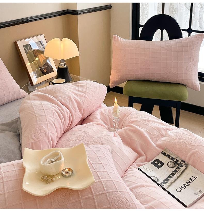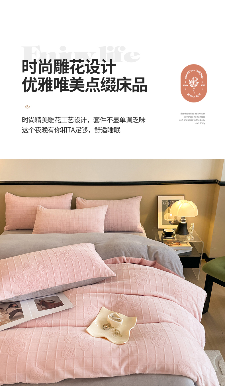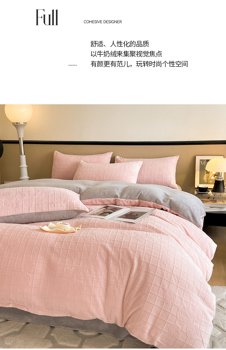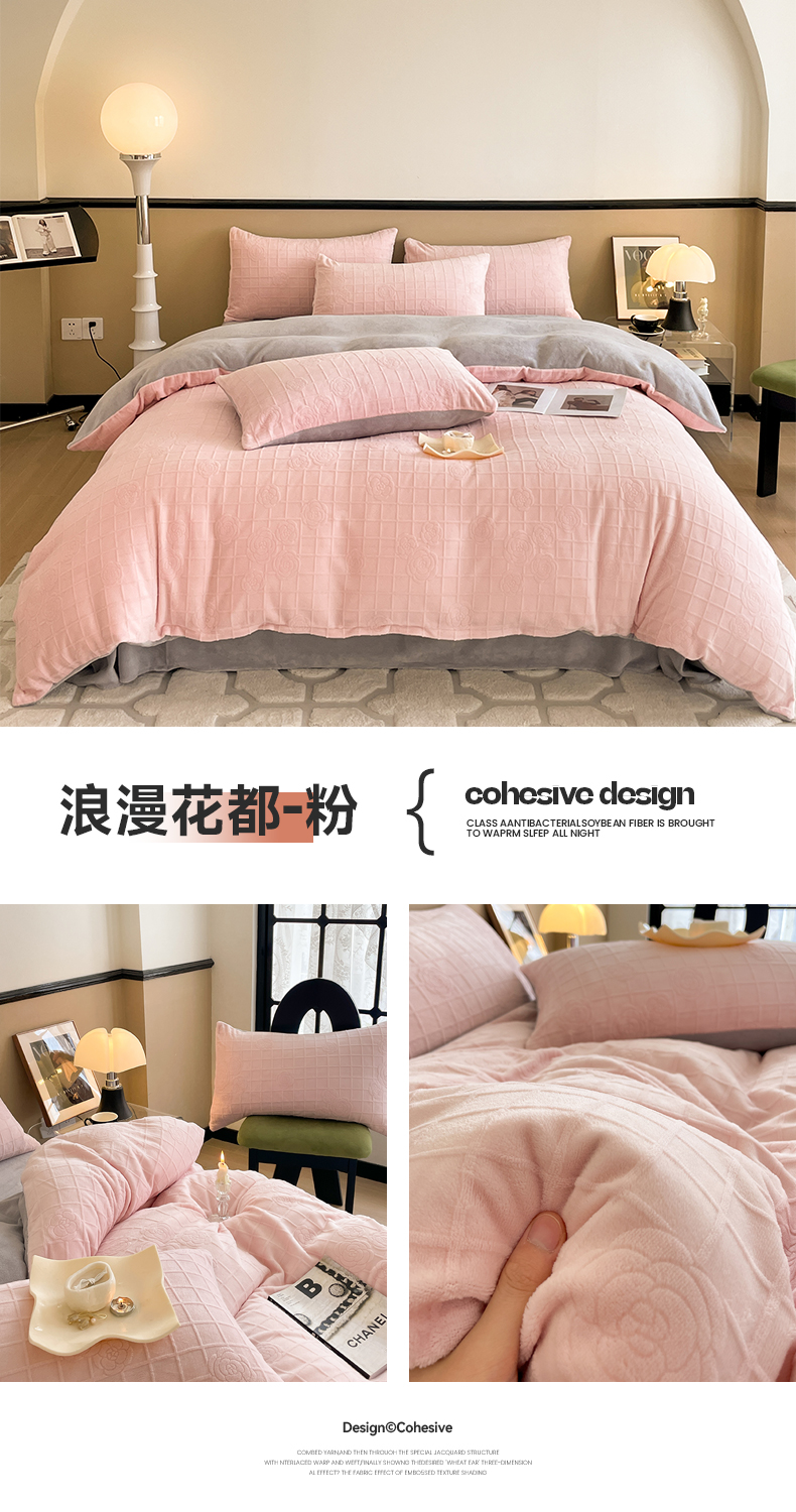 商品名称:澳梵 2023新款雕花牛奶绒四件套 浪漫花都-粉