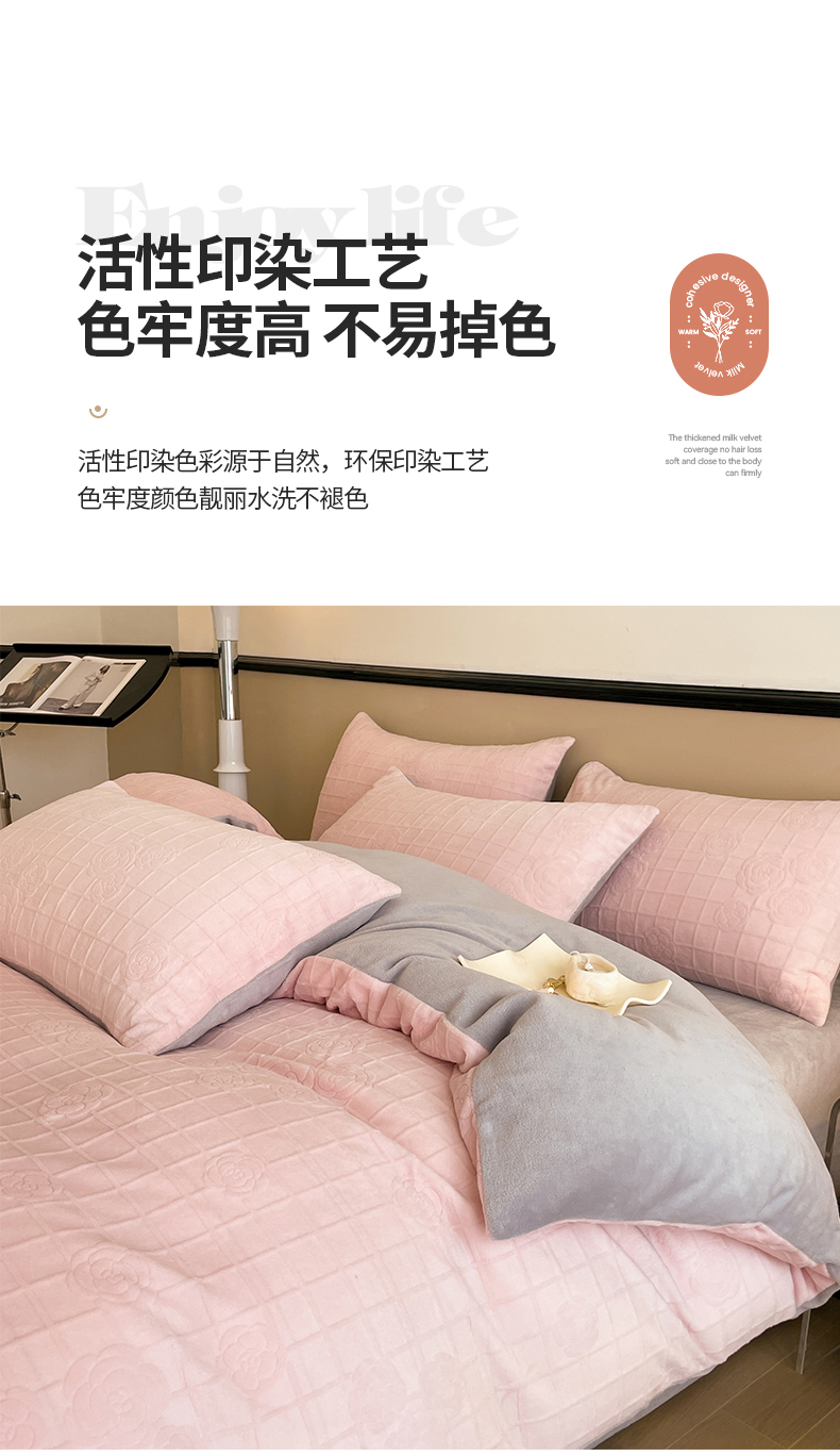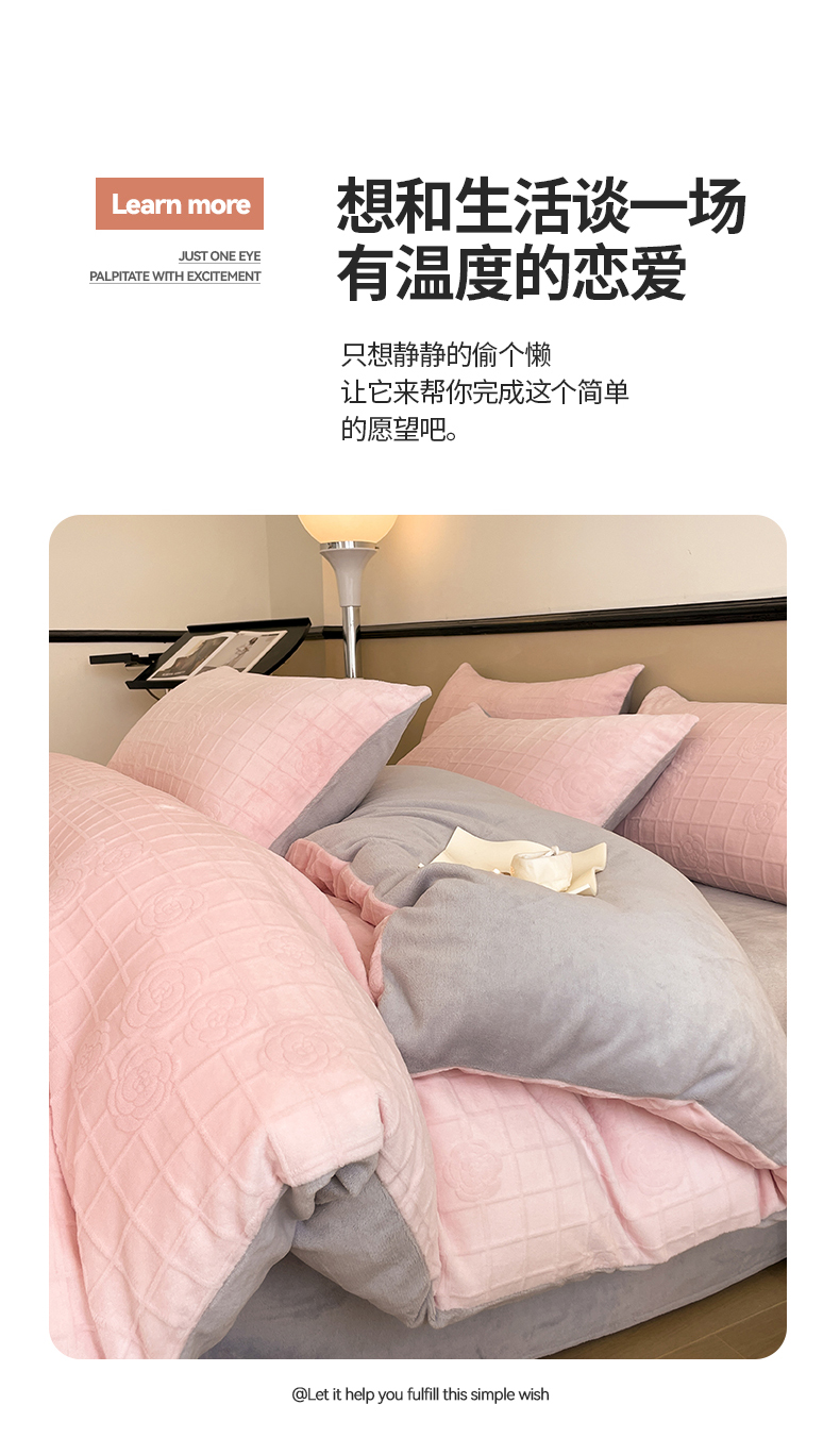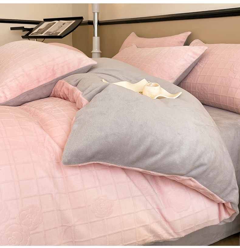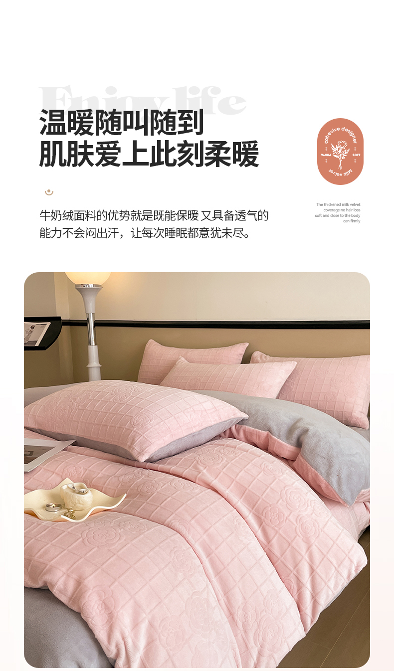商品名称:澳梵 2023新款雕花牛奶绒四件套 浪漫花都-粉