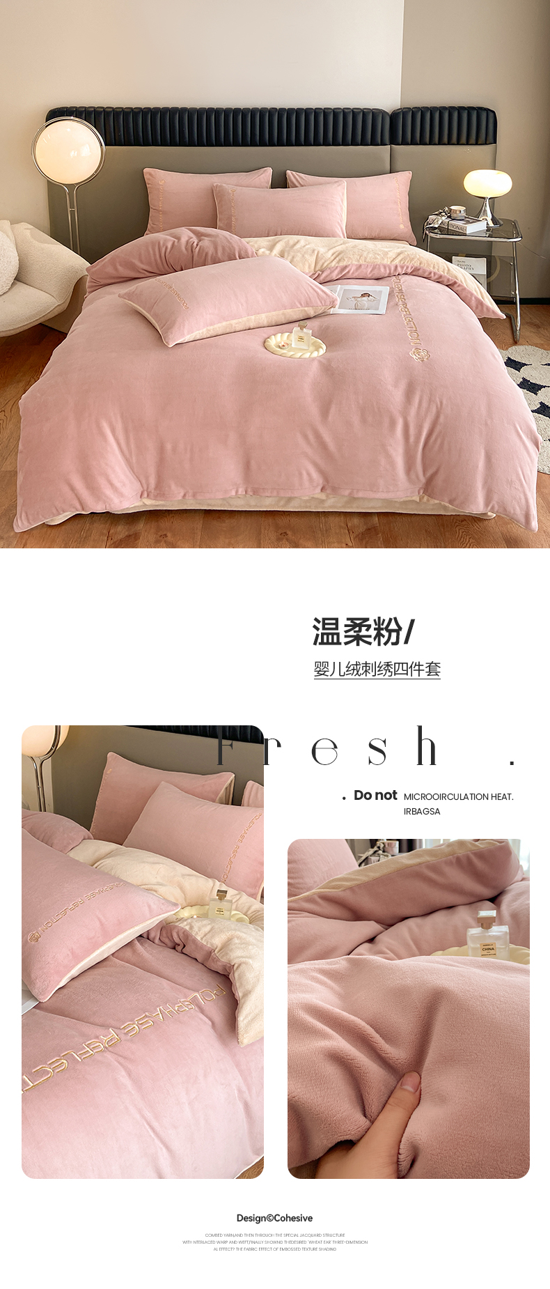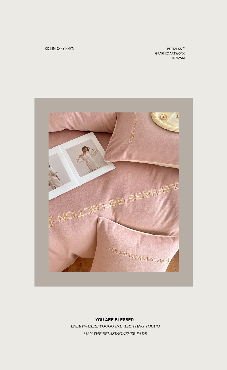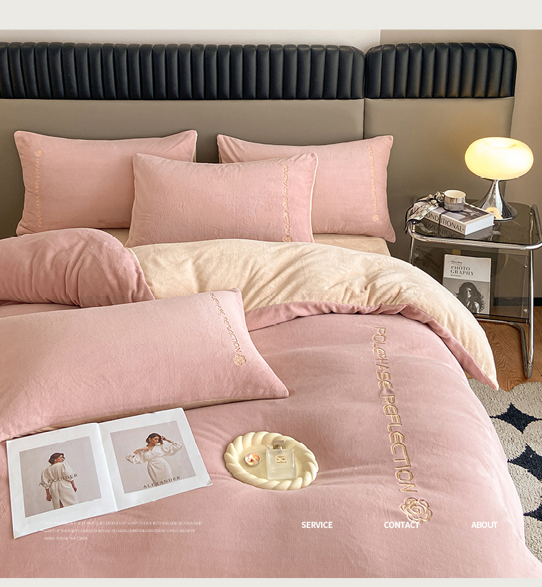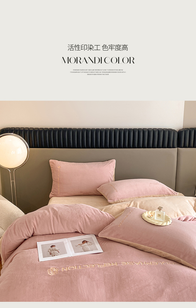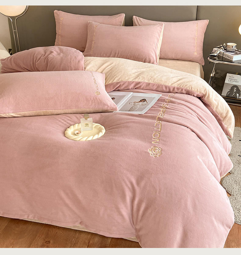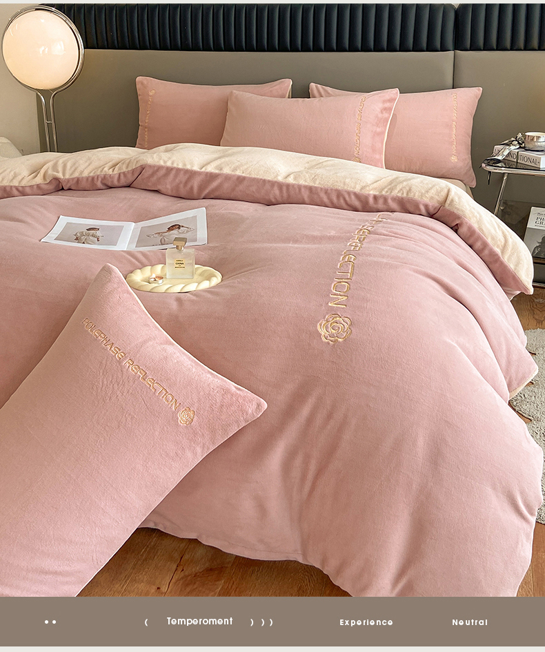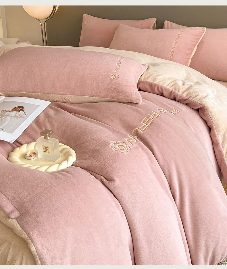 商品名称:澳梵 2023新款轻奢风牛奶绒刺绣四件套 温柔粉