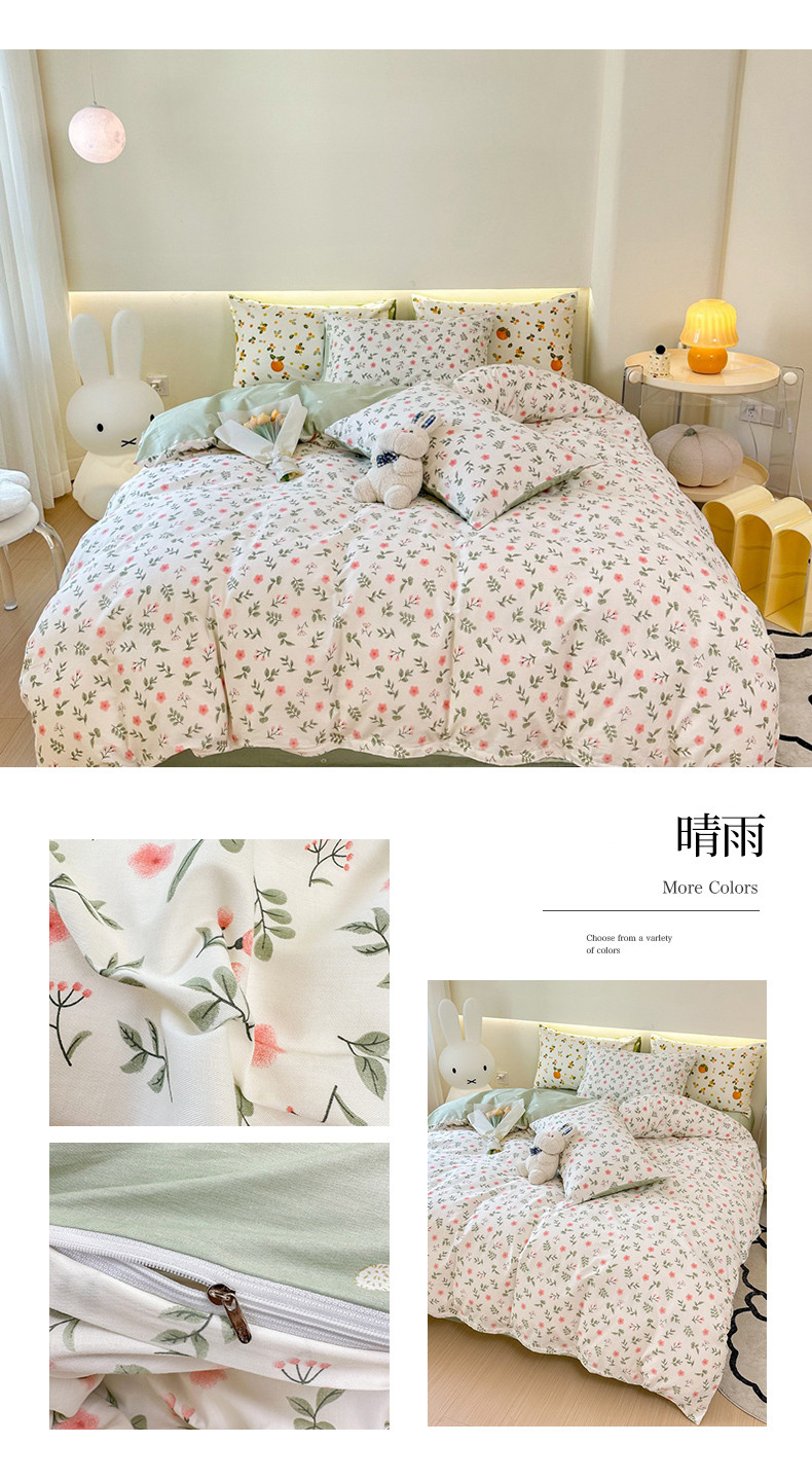 商品名称:权瑾家纺 13372全棉纯棉四件套直播爆款小清新少女风 晴雨