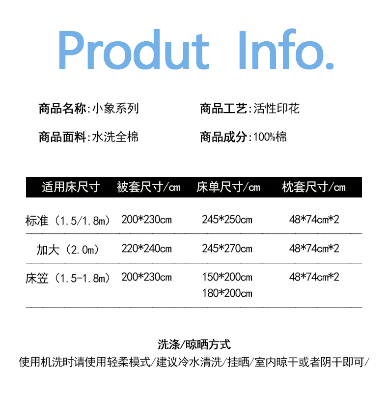 商品名称:桔子家纺 2023新款40支纯棉水洗棉四件套-小象系列 粉色小象