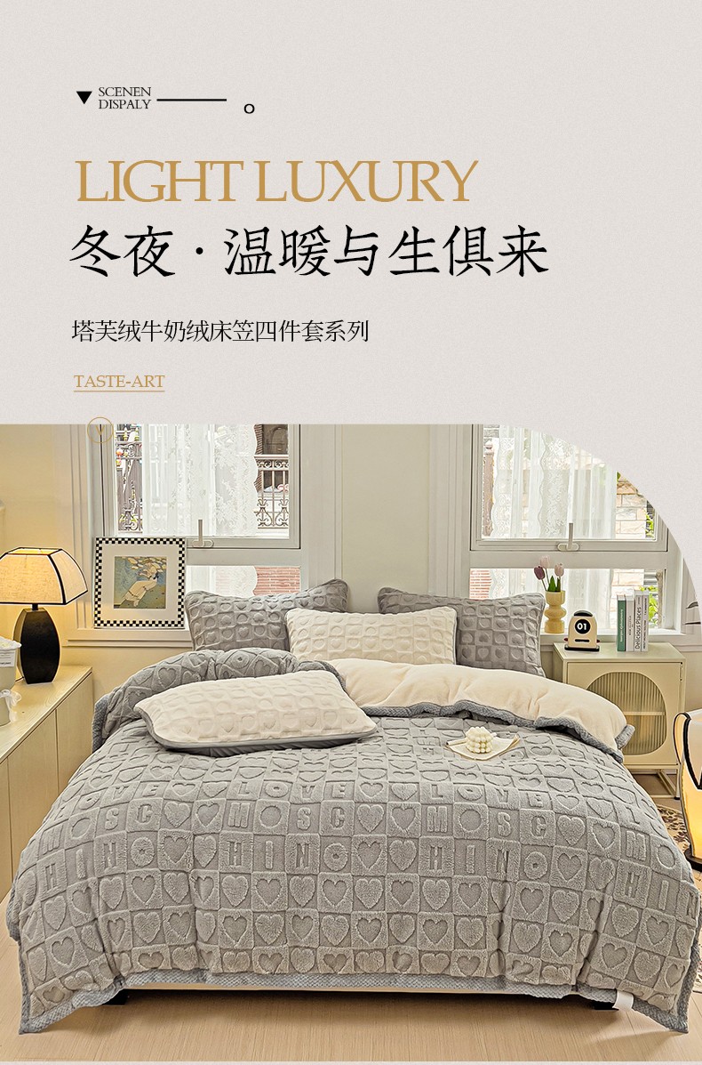 法澳 2023新款230克塔芙绒被套+牛奶绒夹棉床笠款四件套 高级灰