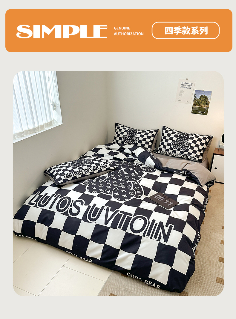 商品名称:色鬼 2023新款秋冬网红款四季款潮流四件套直播爆款 棋盘格公仔