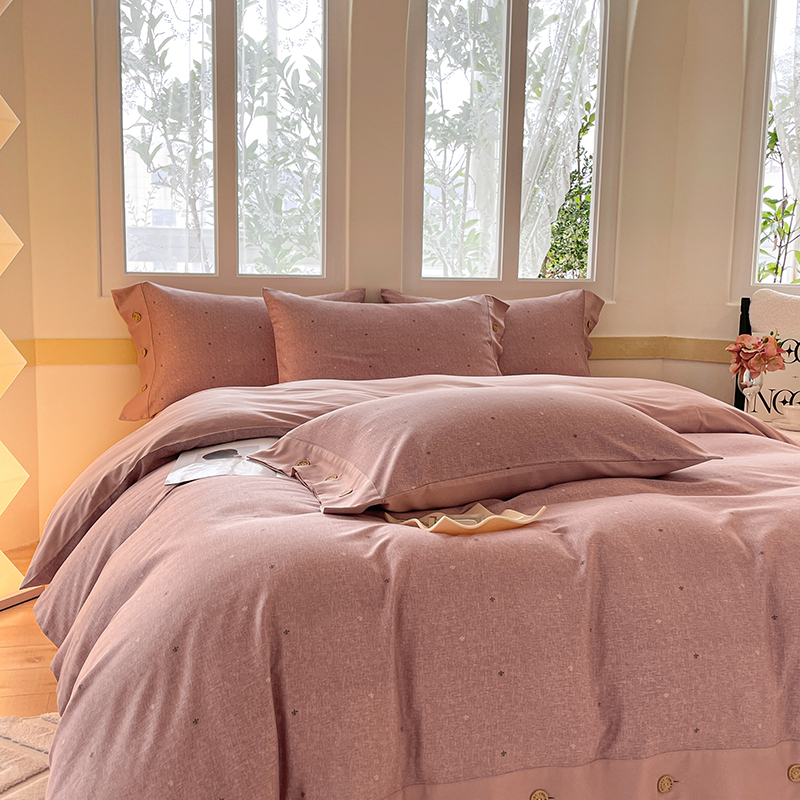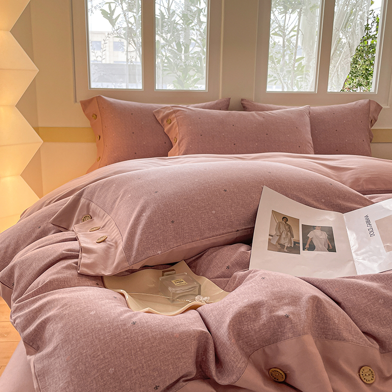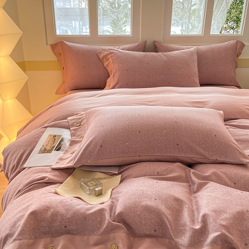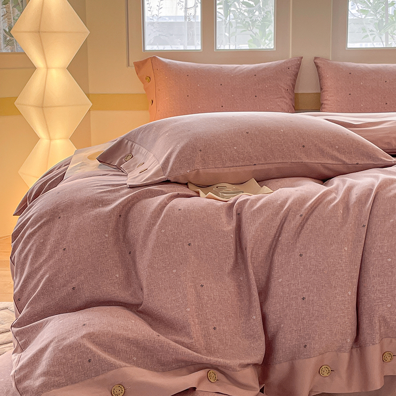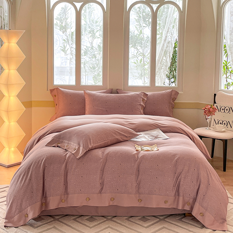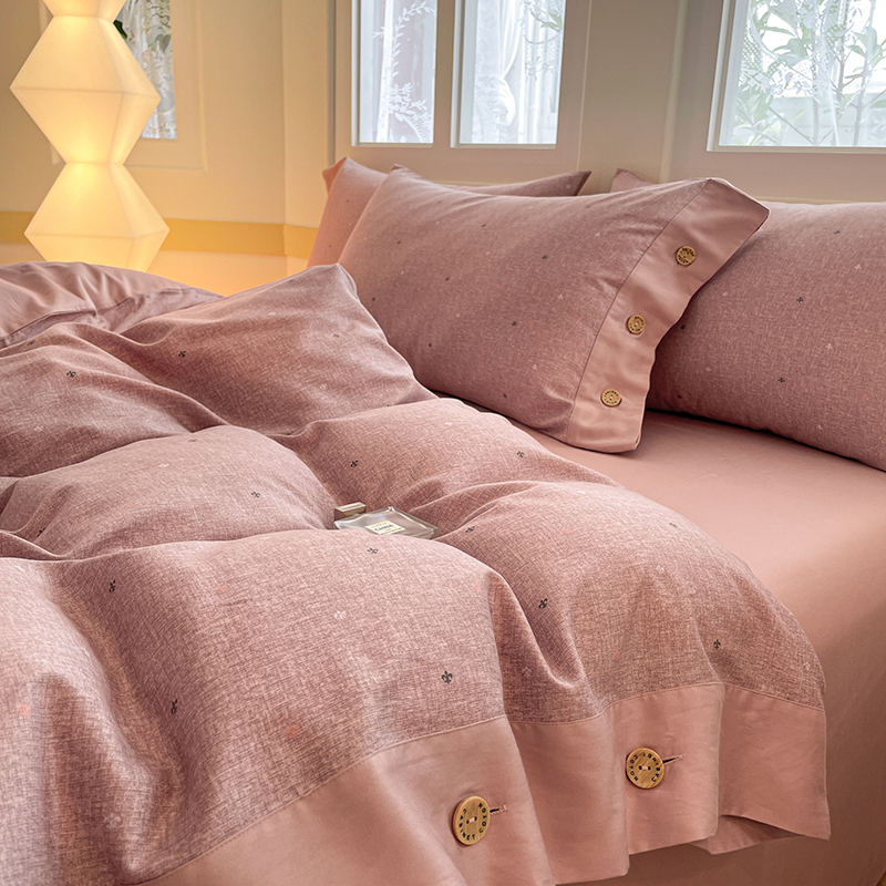 商品名称:栩裕纺织 2023新款磨毛艾阳绒纽扣款四件套 豆沙粉