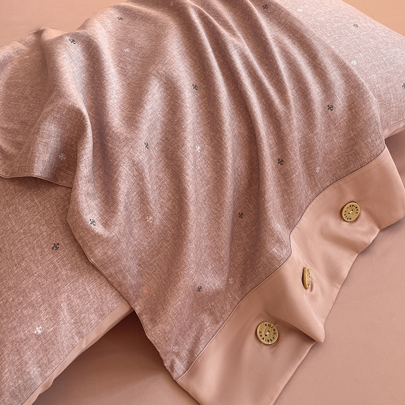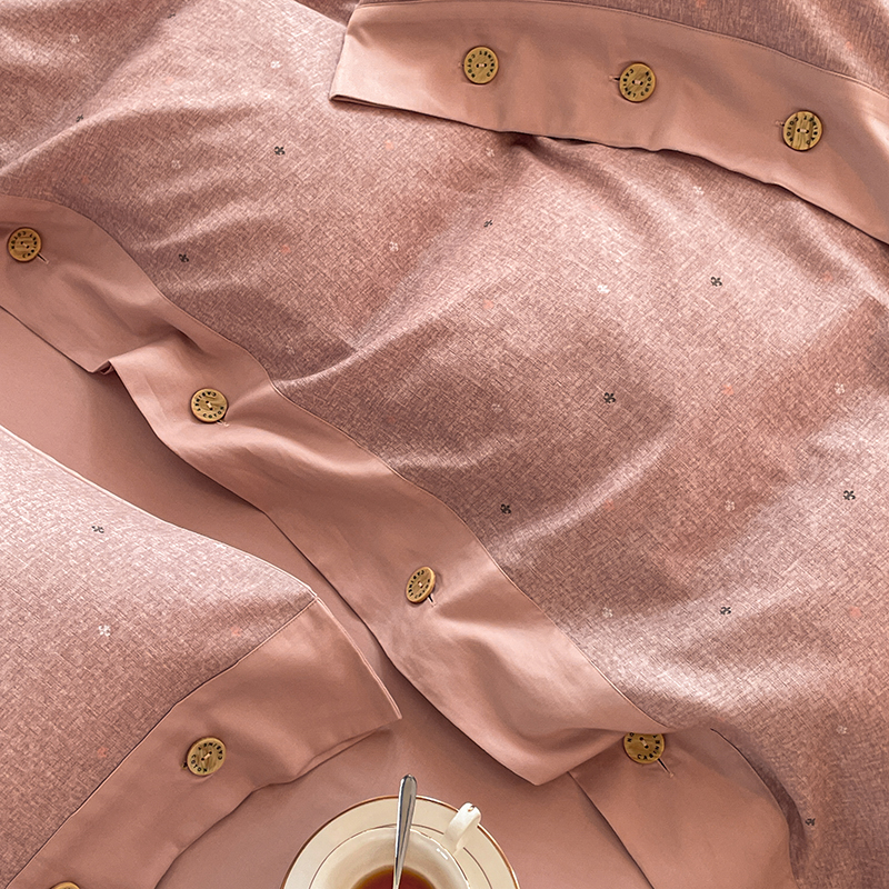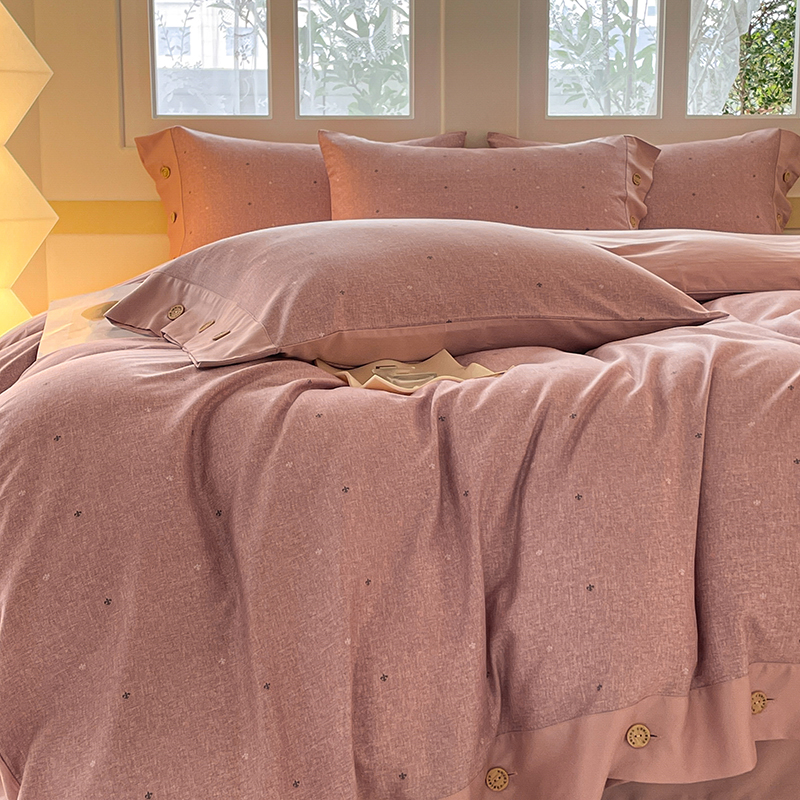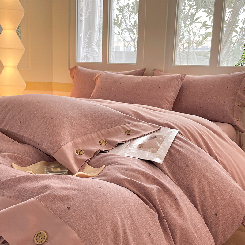 栩裕纺织 2023新款磨毛艾阳绒纽扣款四件套 豆沙粉