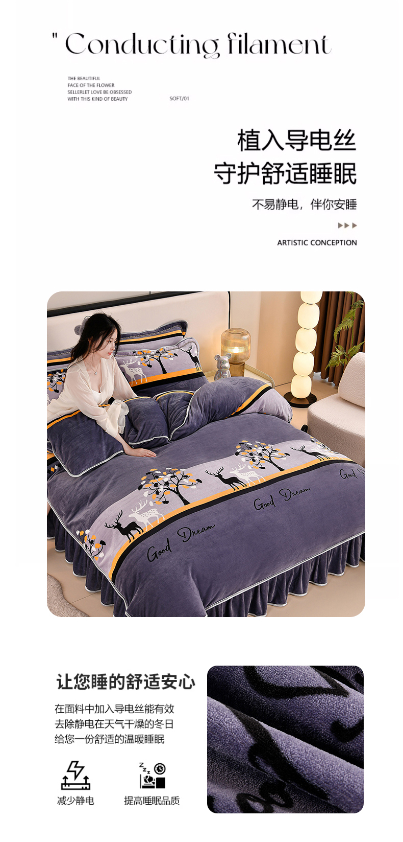 2023直播爆款印花牛奶绒四件套220克法莱绒印花吊边款四件套简约格调,简约格调