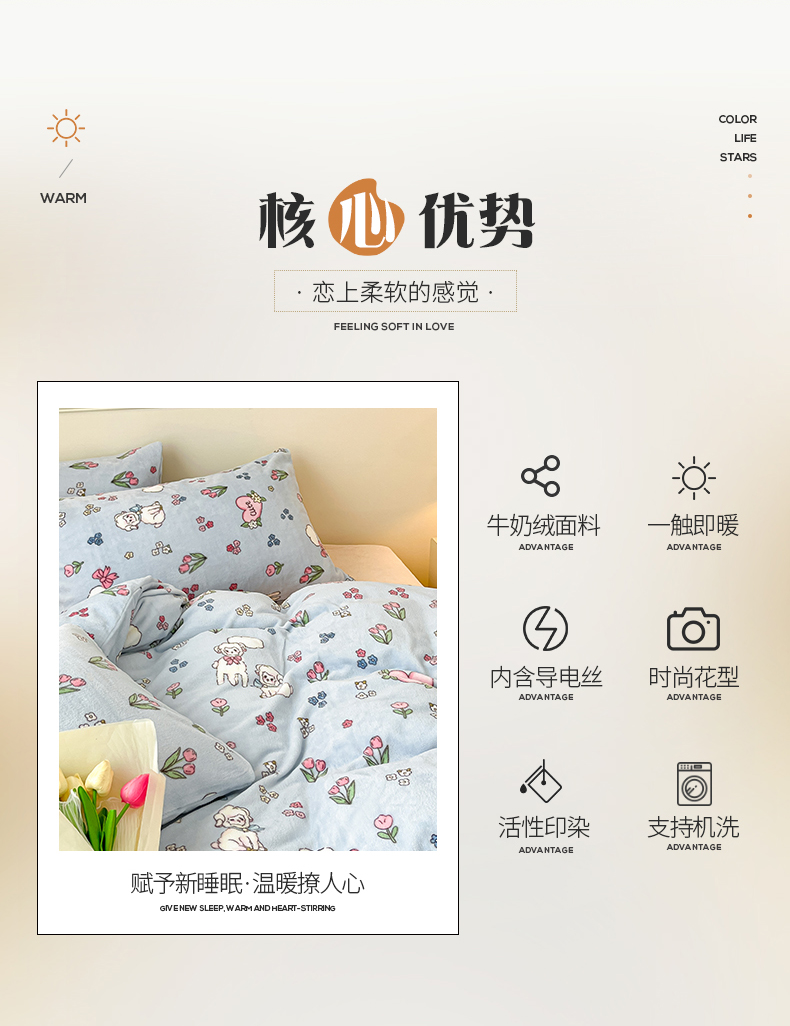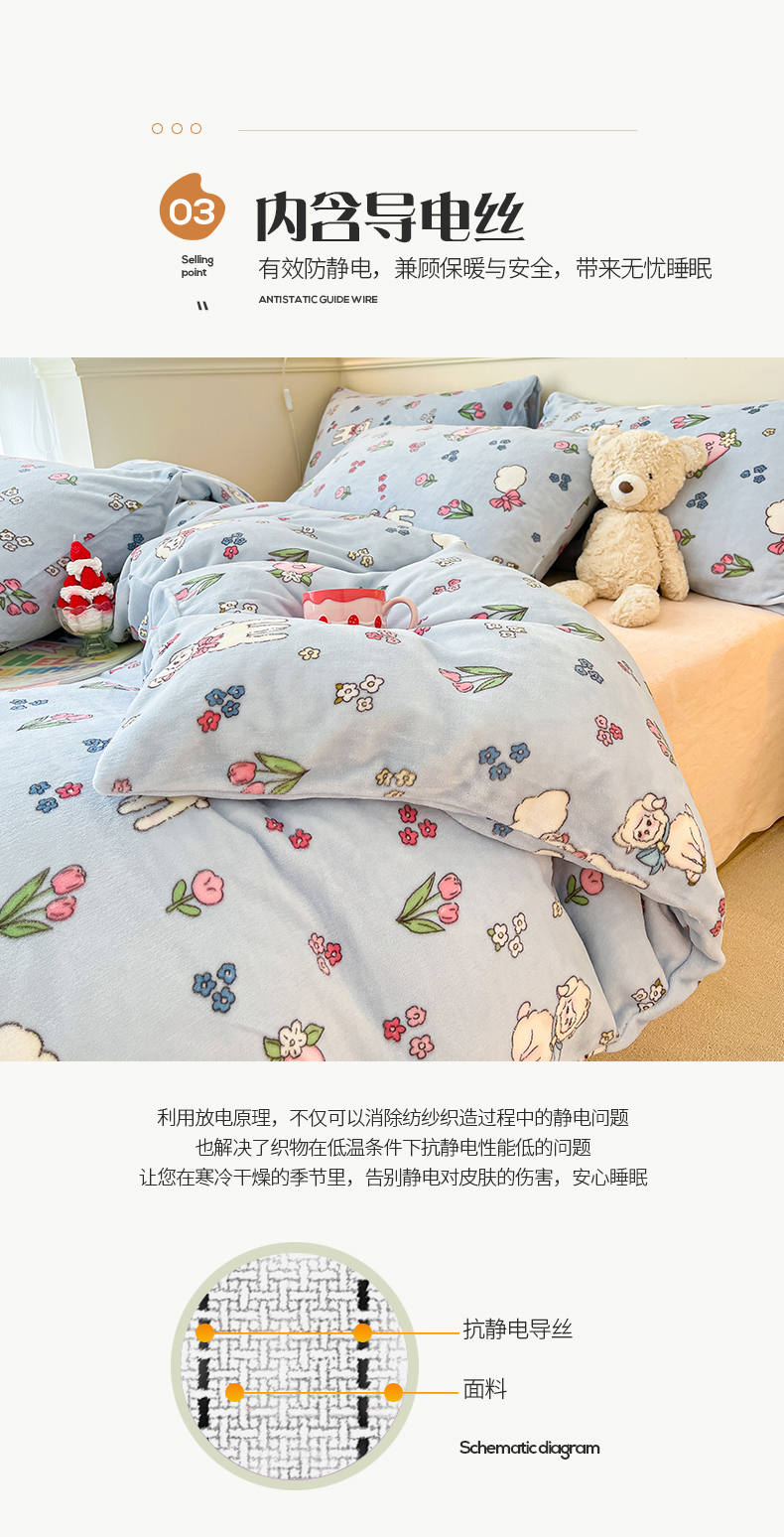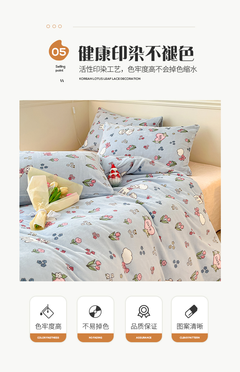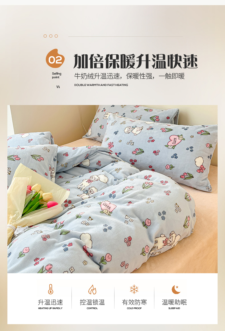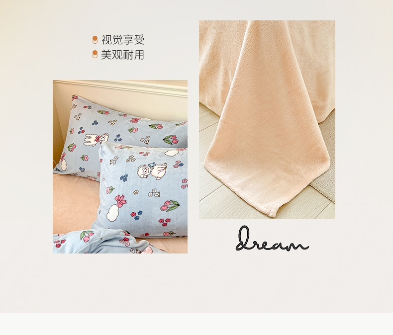 商品名称:桃子家居 2023新款ins韩系简约卡通奶油小清新加厚牛奶绒系列四件套 绒-小可爱羊驼