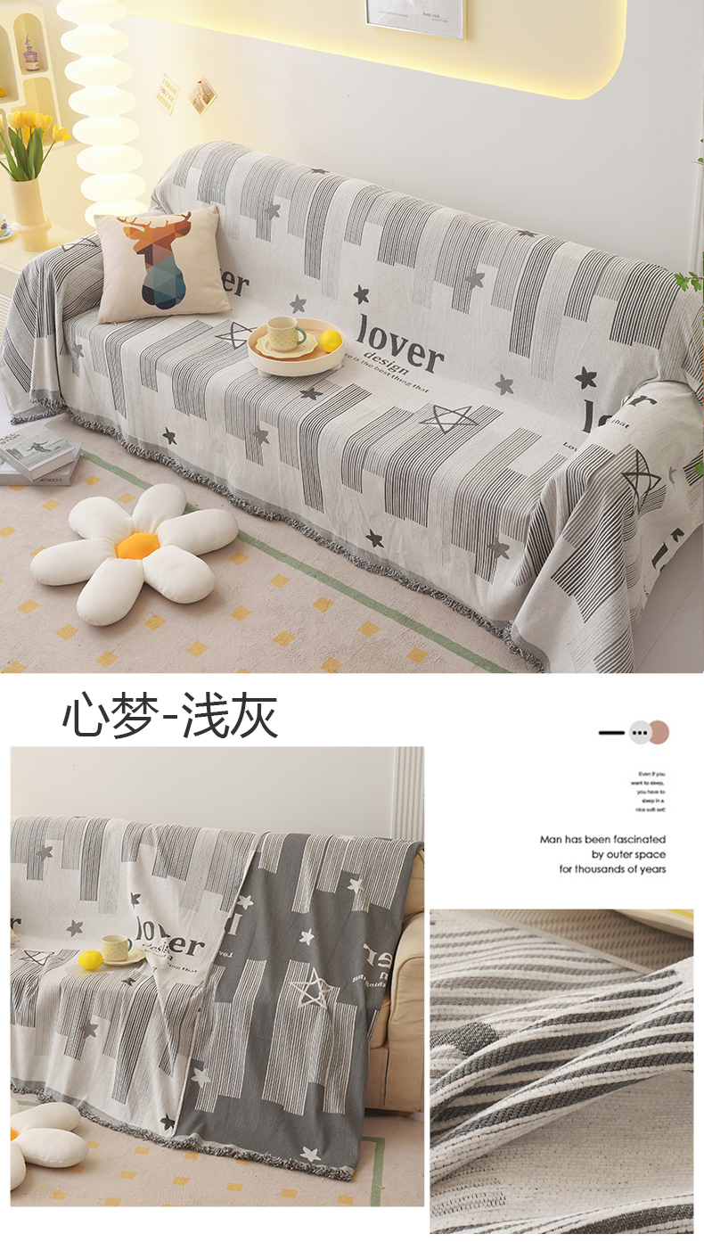 当前位置: 91家纺网 > 商品网购 > 居家布艺 > 坐垫/椅垫/沙发垫 > 沙发垫 > 启博家纺 2023新款抖 音爆款高克重雪尼尔沙发巾 心梦-浅灰