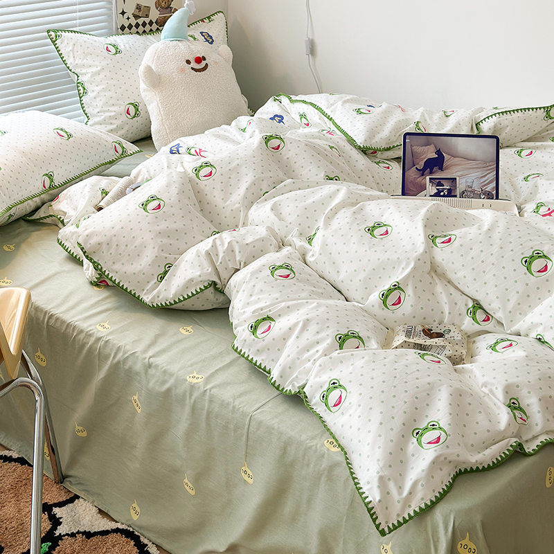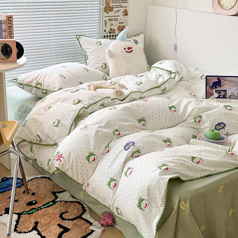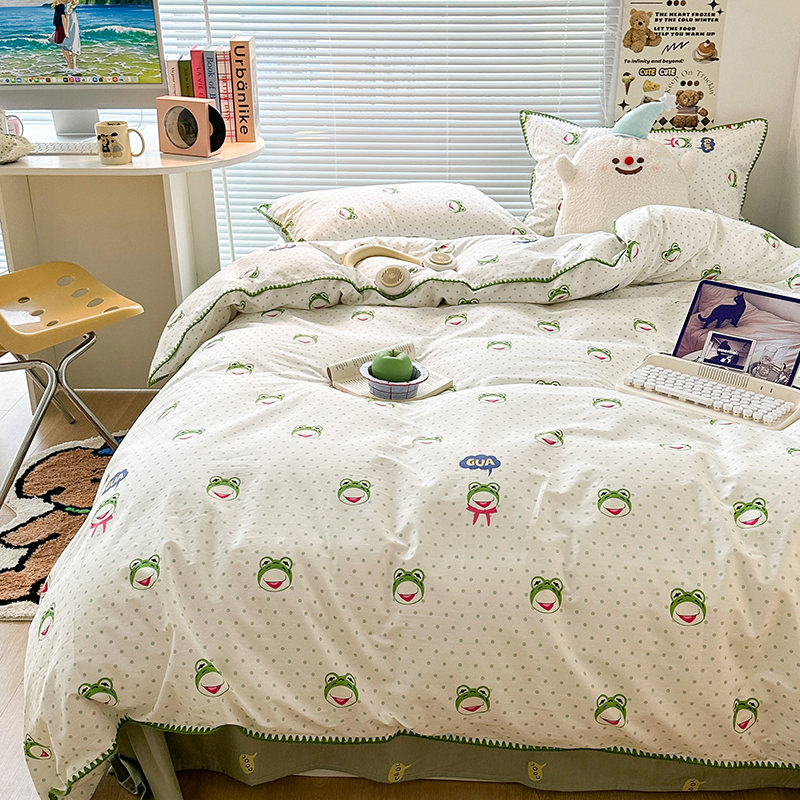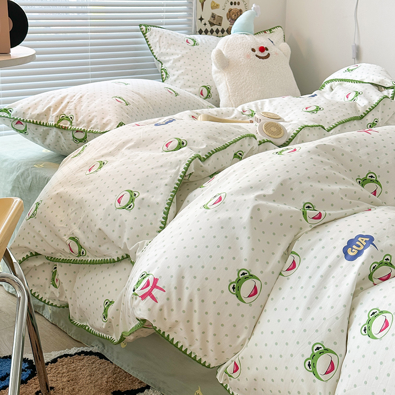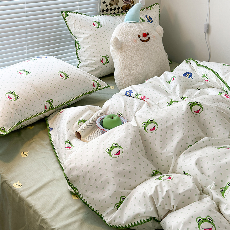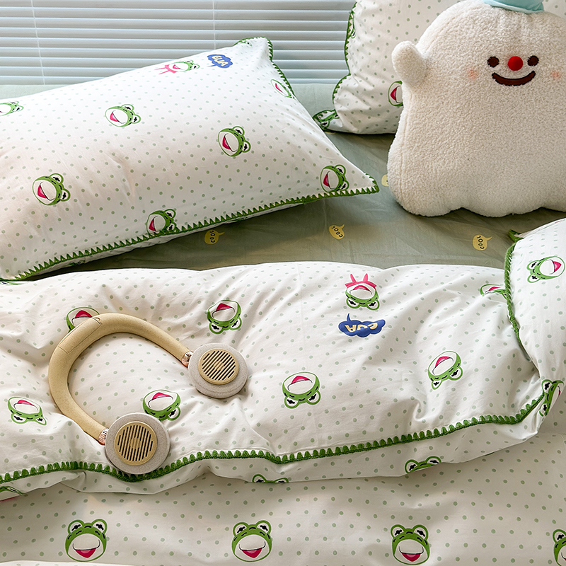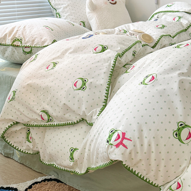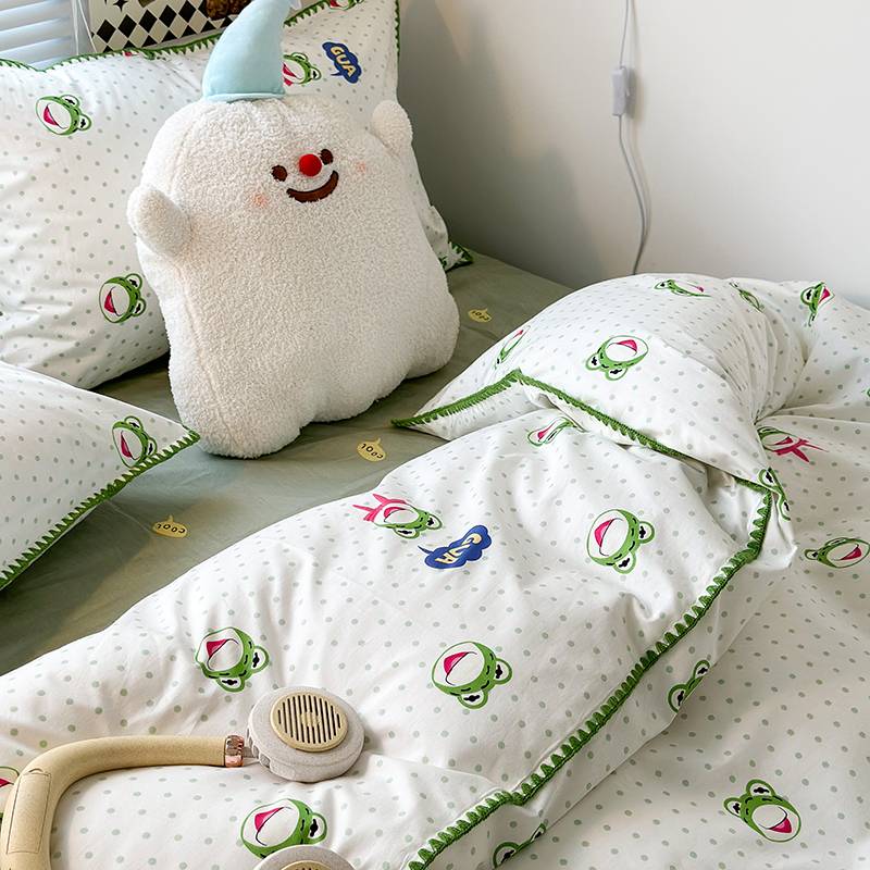 2023新款全棉印花贝壳三角针四件套 网红小青蛙