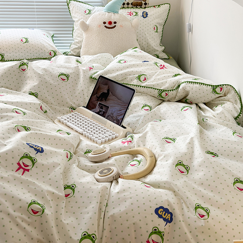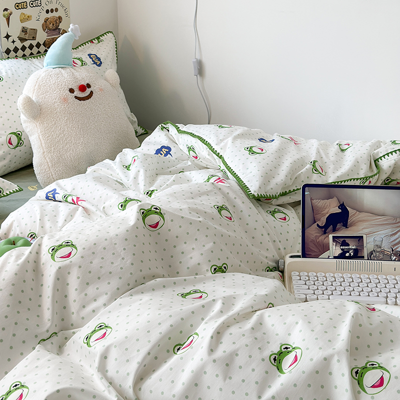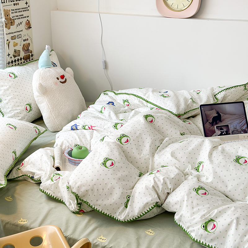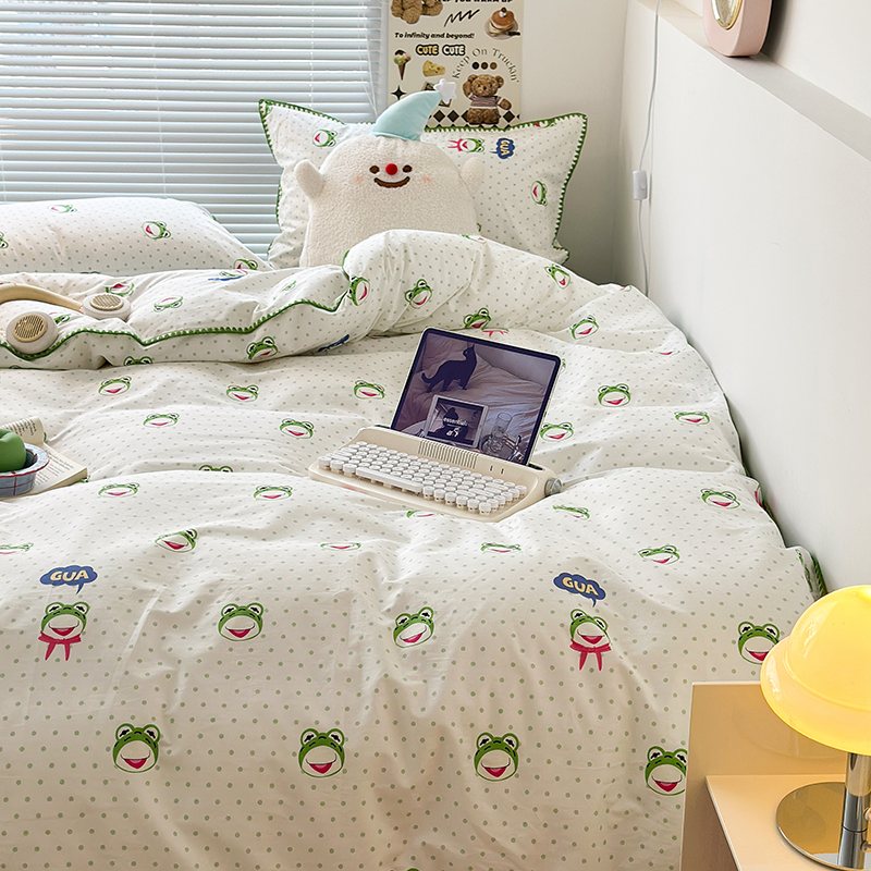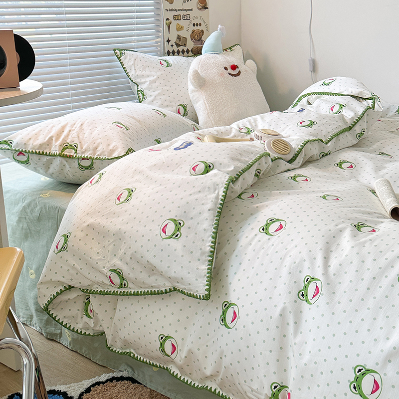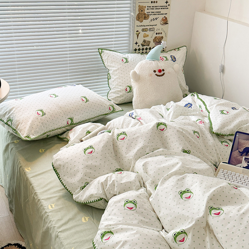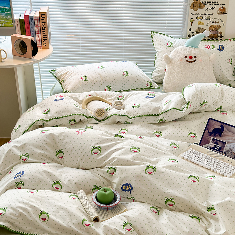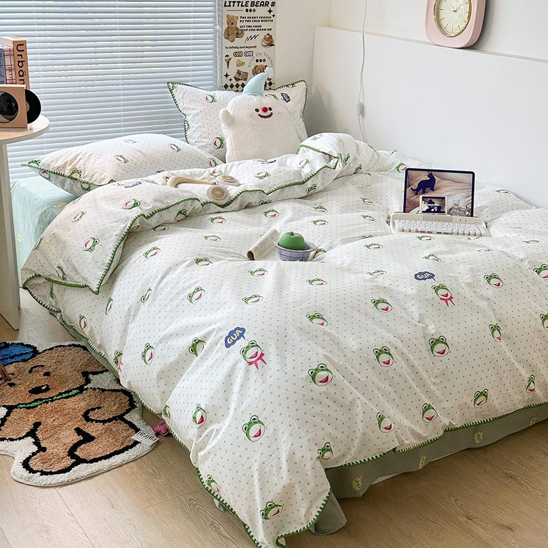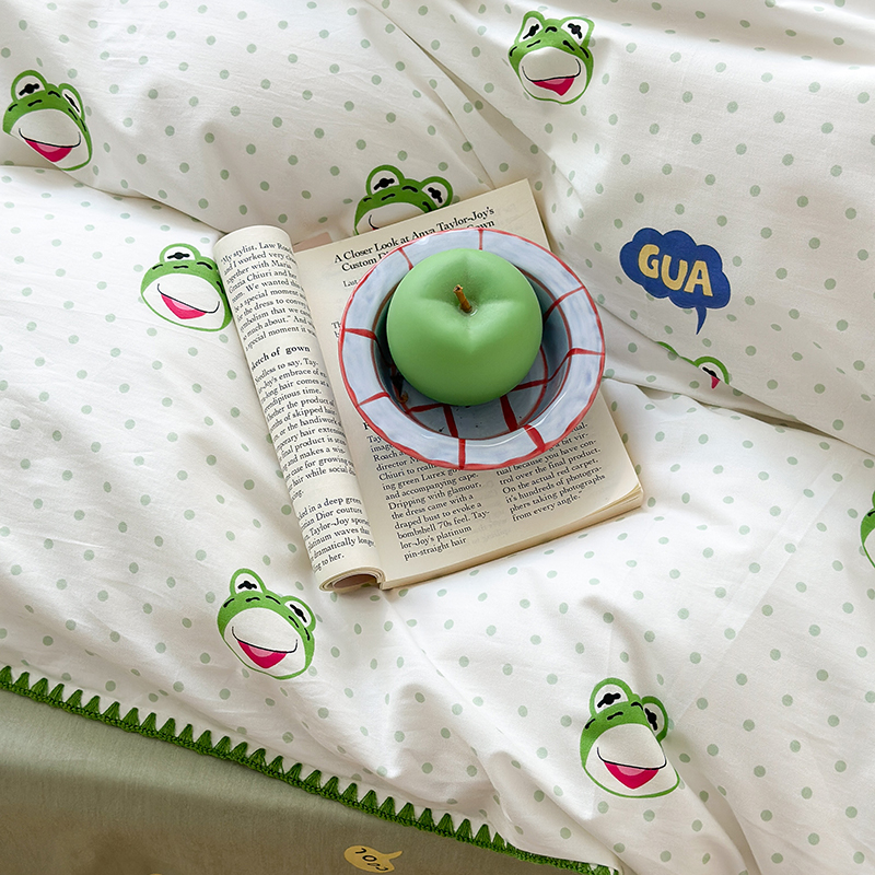 2023新款全棉印花贝壳三角针四件套 网红小青蛙