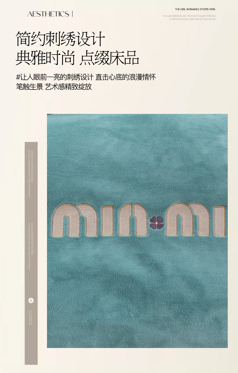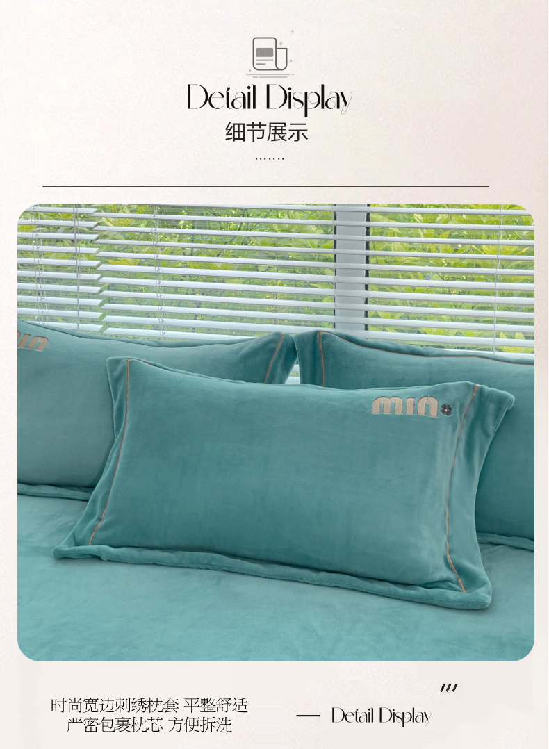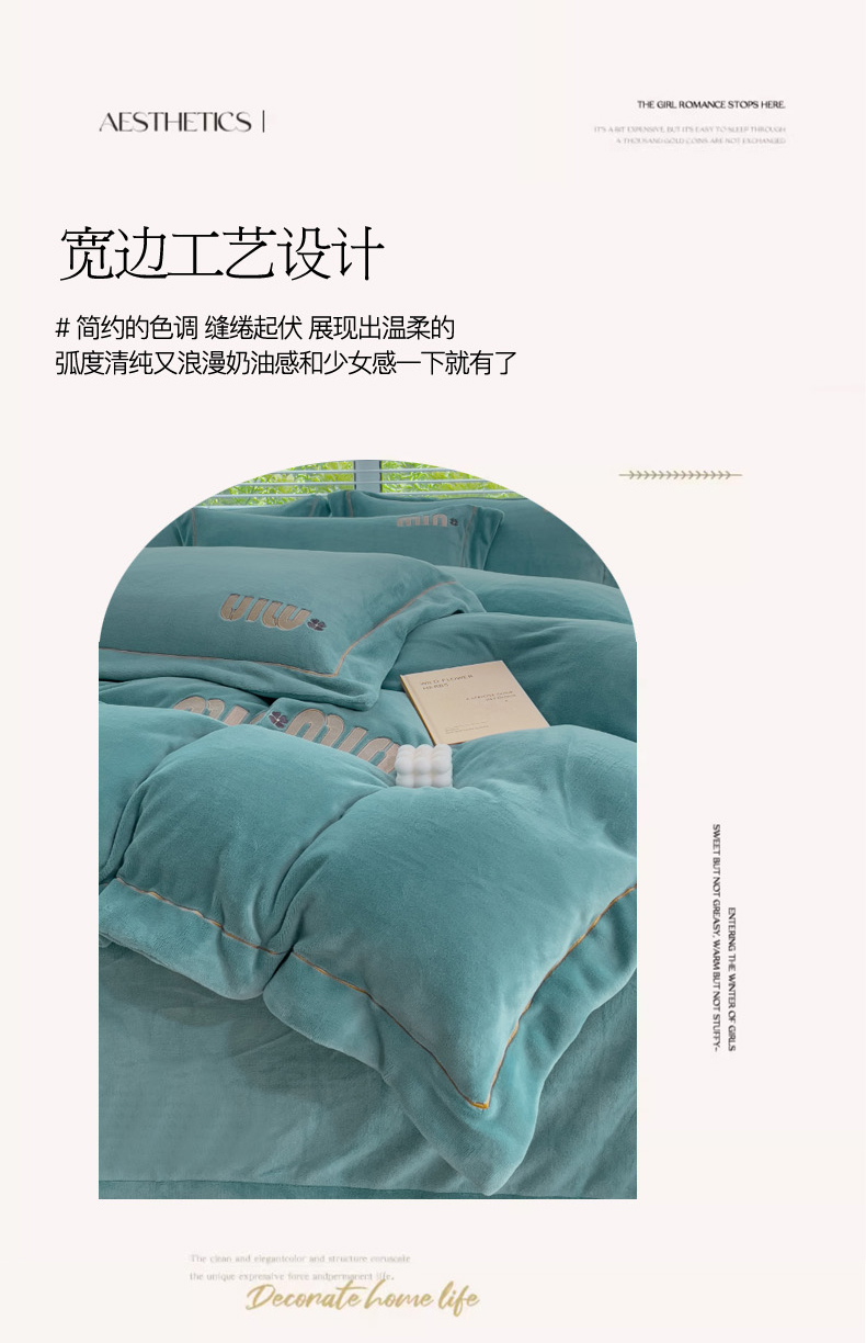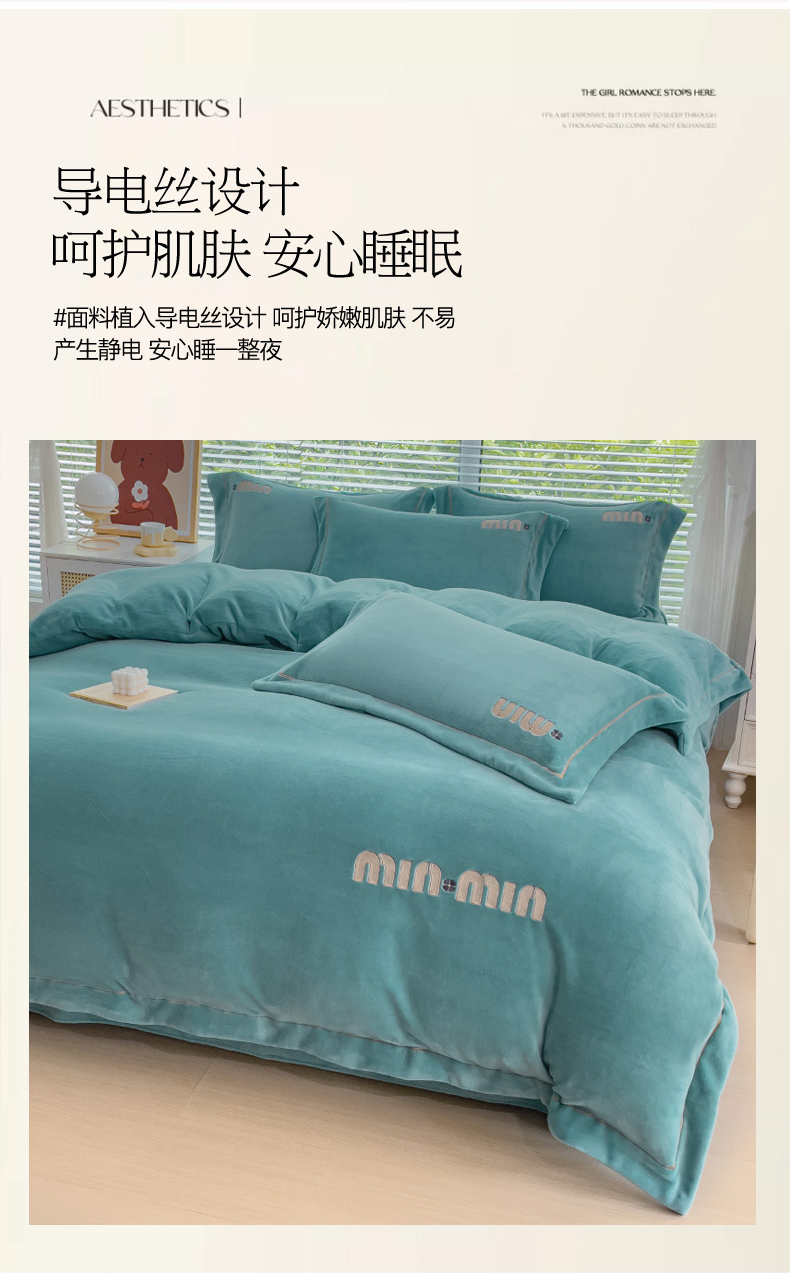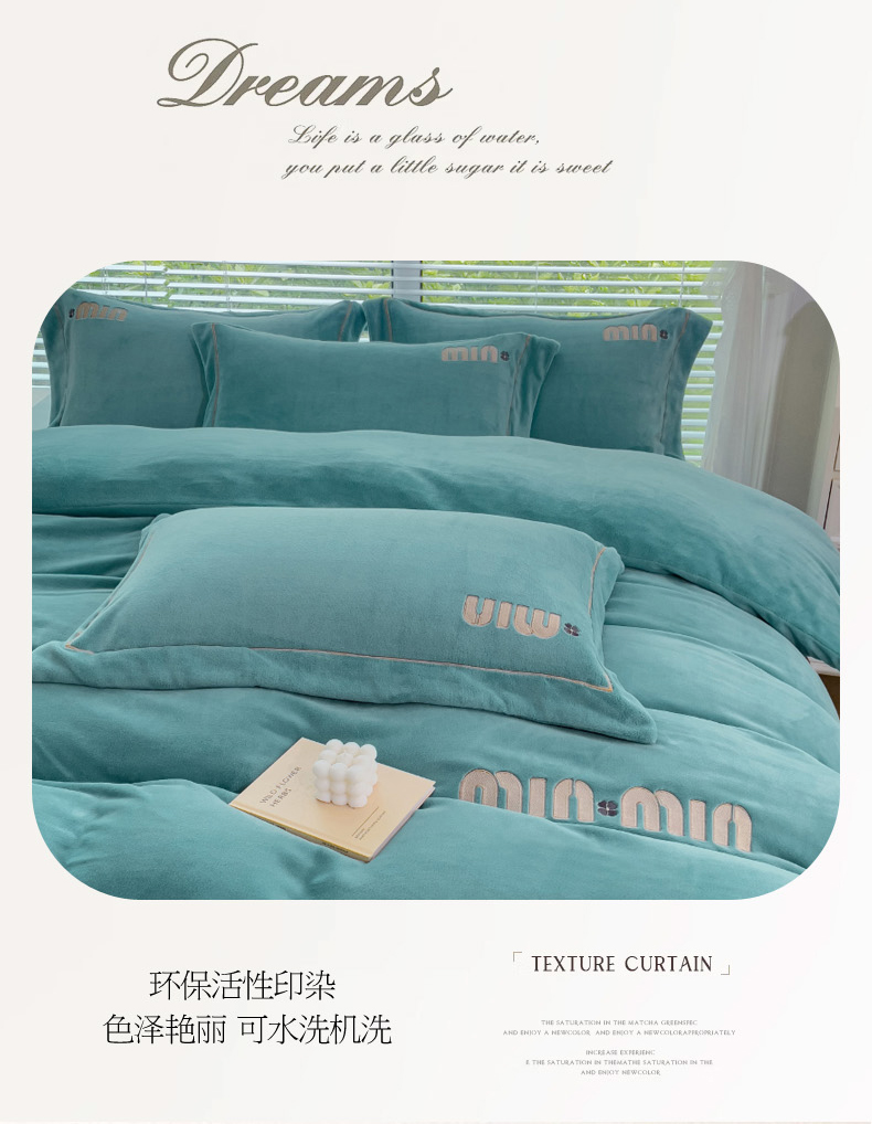 商品名称:梦可莱2023新款迷妮绣花牛奶绒四件套 石绿
