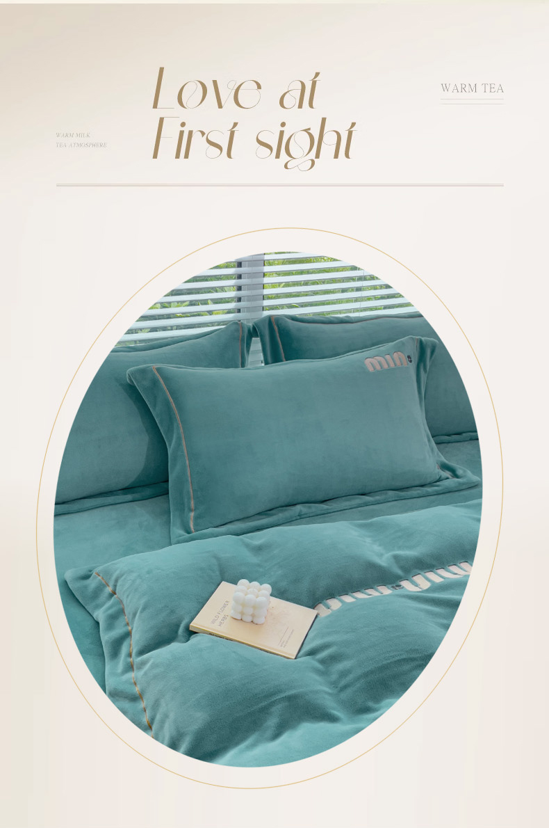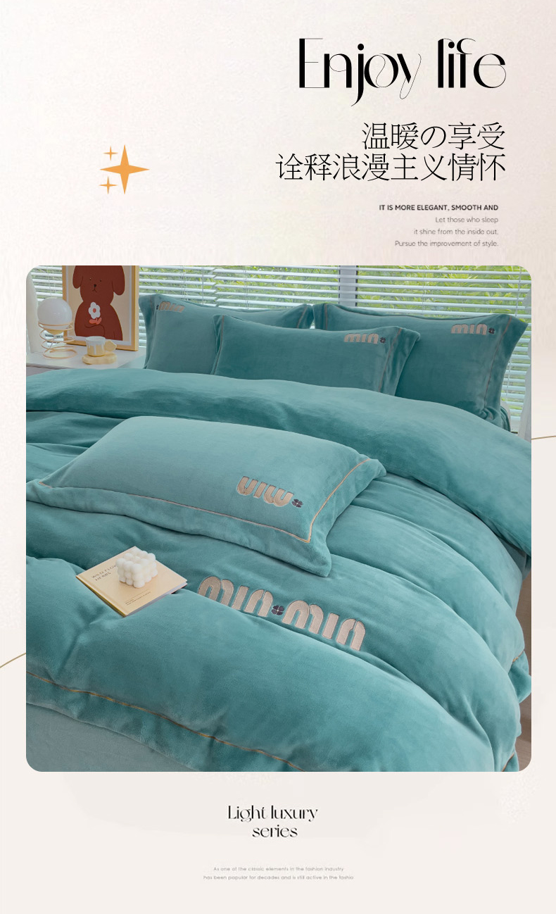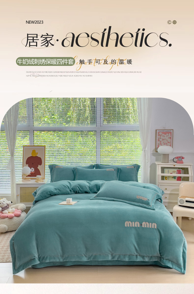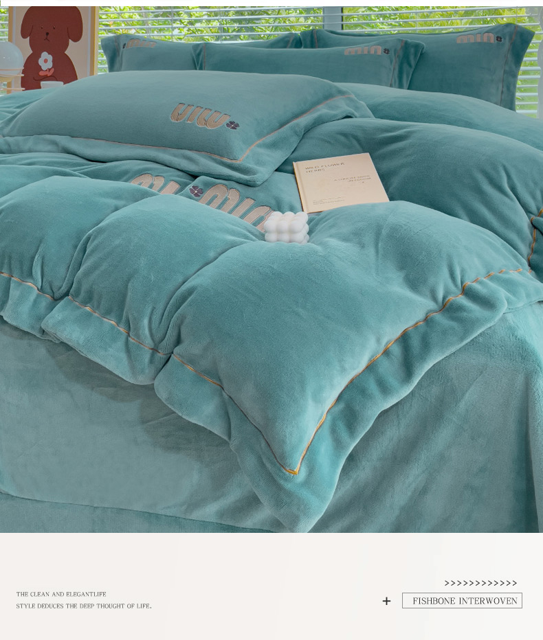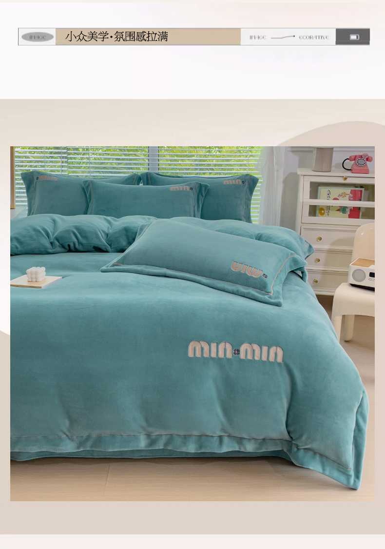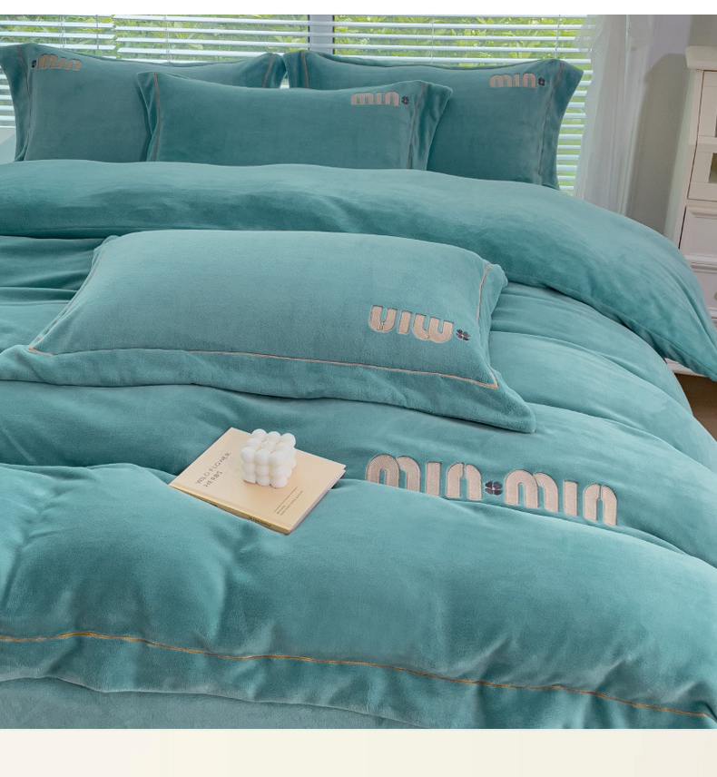 梦可莱2023新款迷妮绣花牛奶绒四件套 石绿