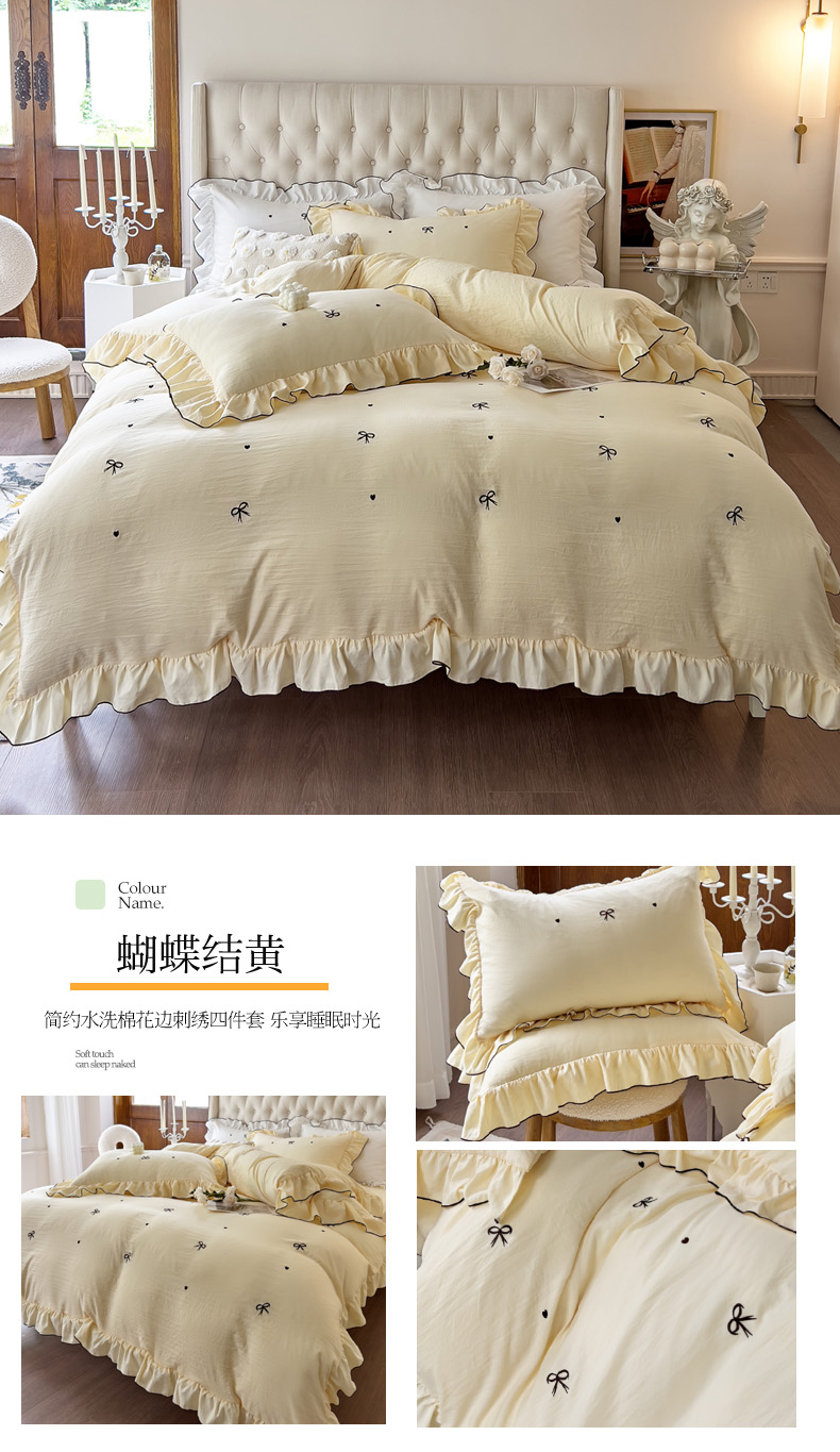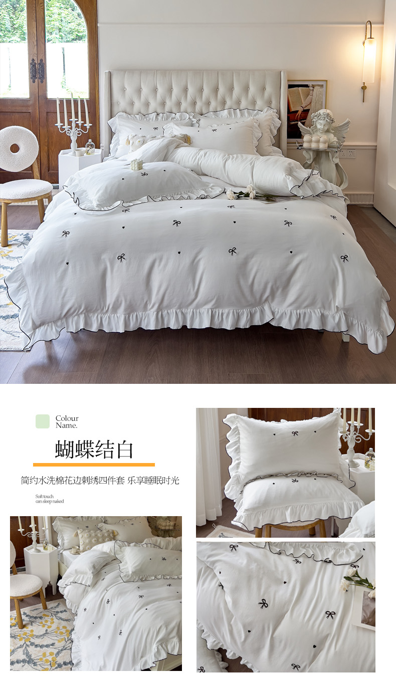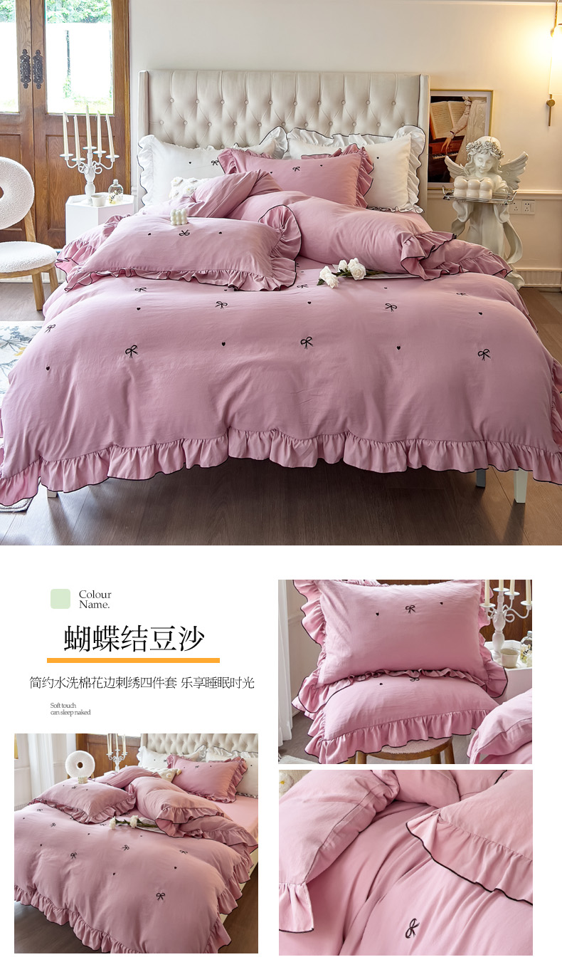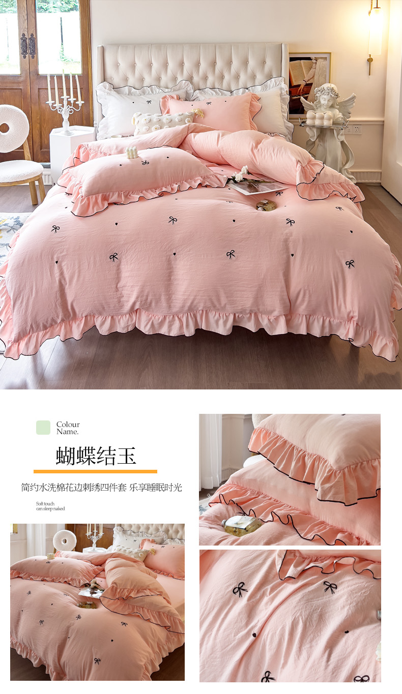 (总)梦可莱 2023新款水洗棉蝴蝶结花边刺绣四件套