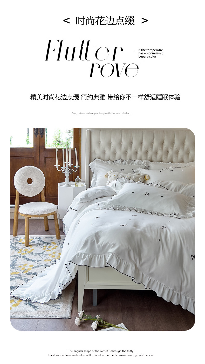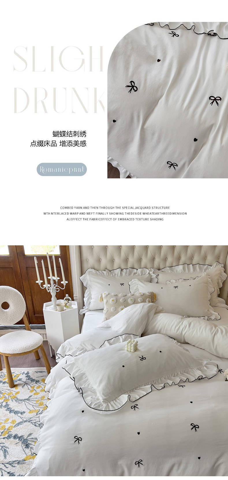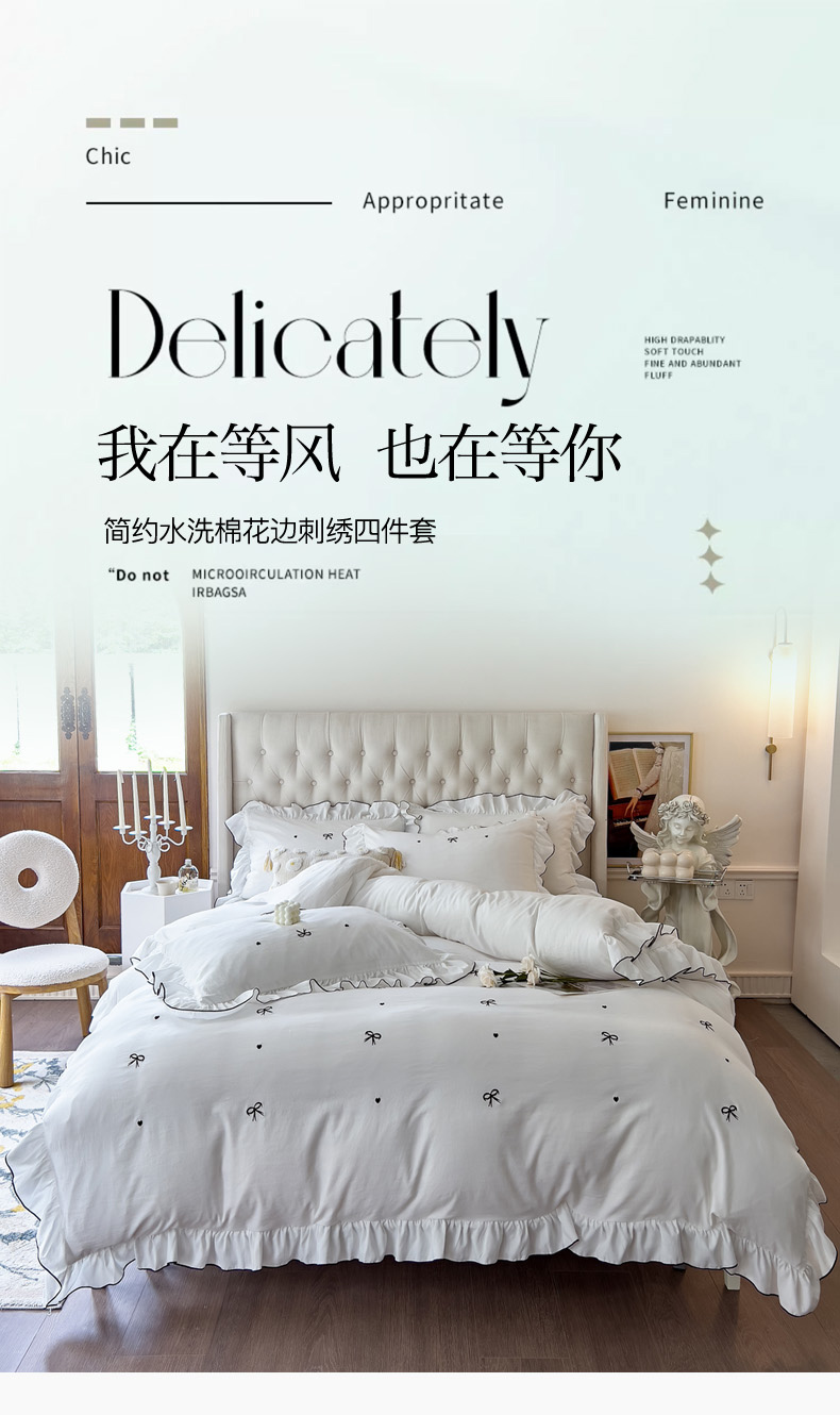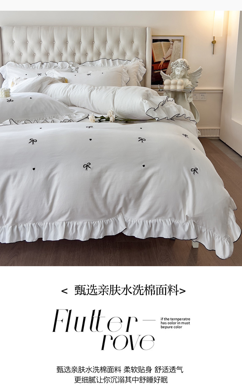 (总)梦可莱 2023新款水洗棉蝴蝶结花边刺绣四件套