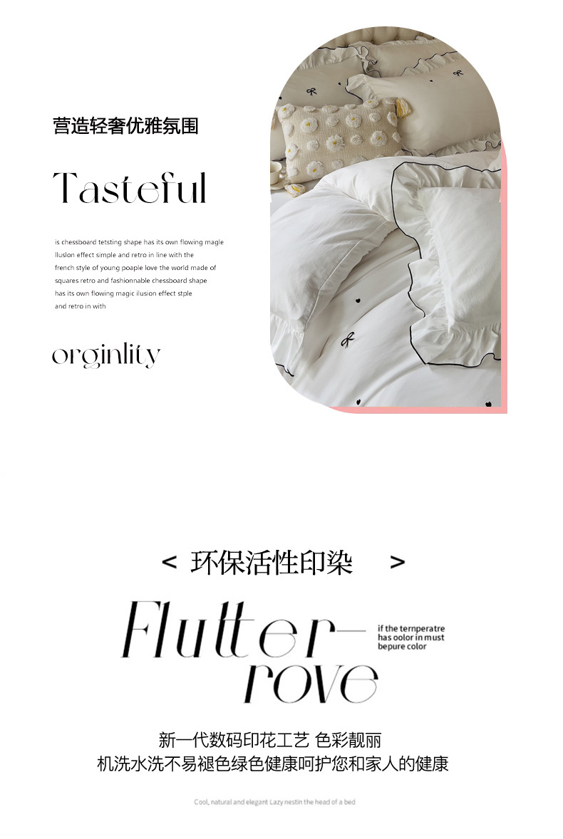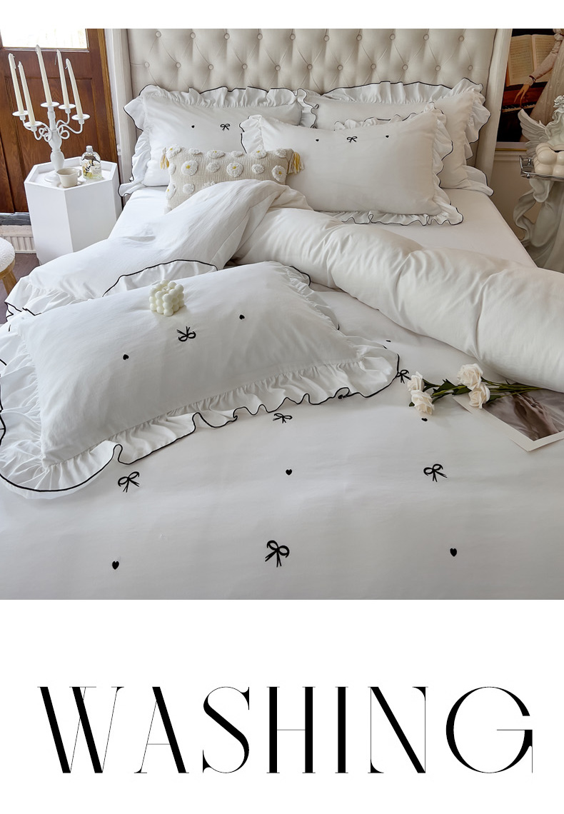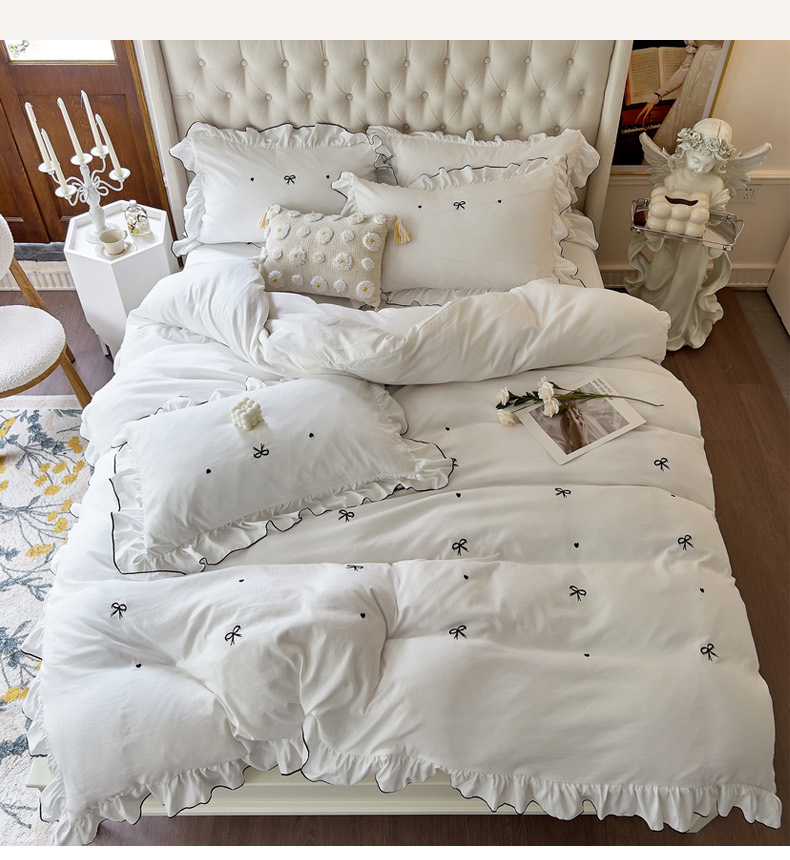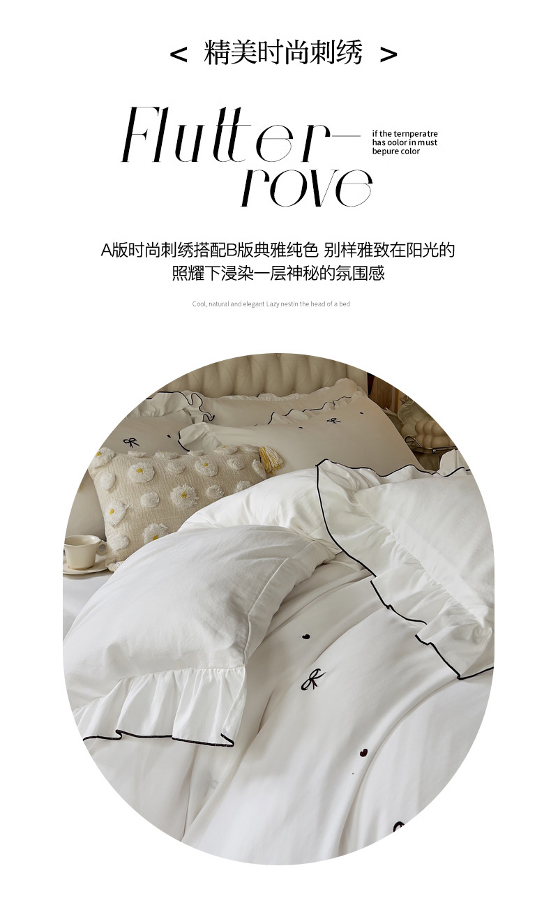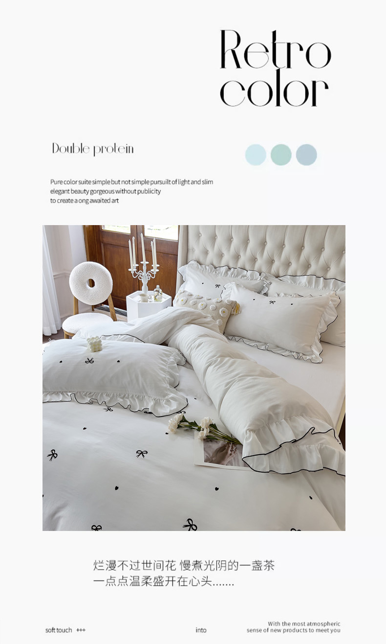 (总)梦可莱 2023新款水洗棉蝴蝶结花边刺绣四件套