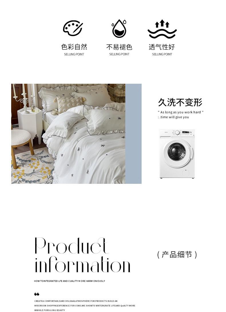商品名称:(总)梦可莱 2023新款水洗棉蝴蝶结花边刺绣四件套