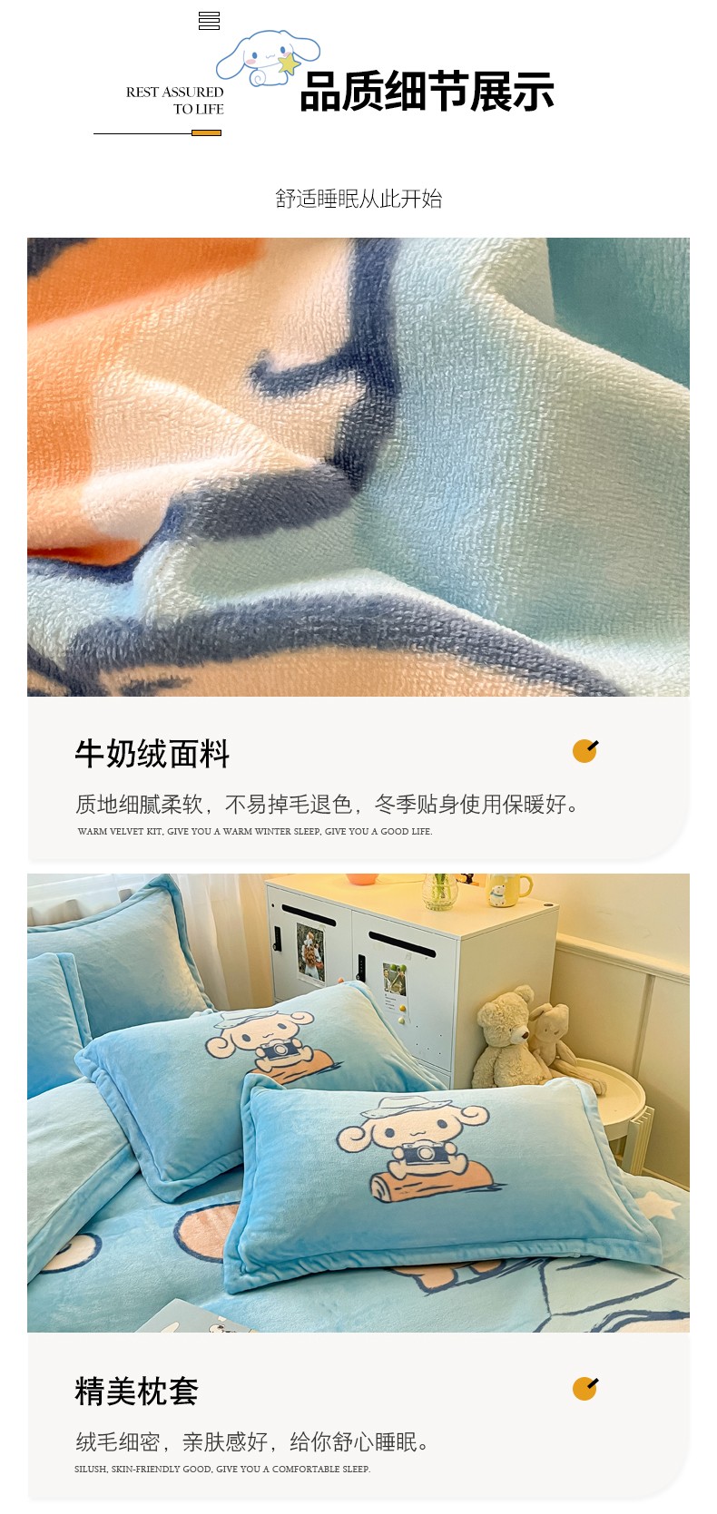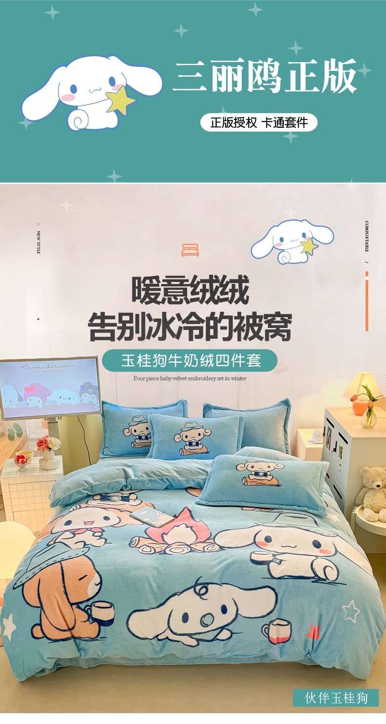 当前位置: 91家纺网 > 商品网购 > 床品套件 > 四件套 > 牛奶绒四件套 > 金爱家 2023新款kt猫大阪加厚牛奶绒系列四件套 伙伴玉桂狗