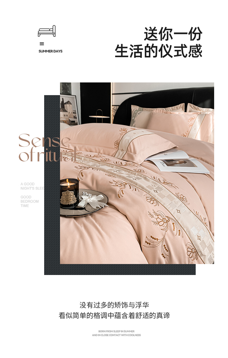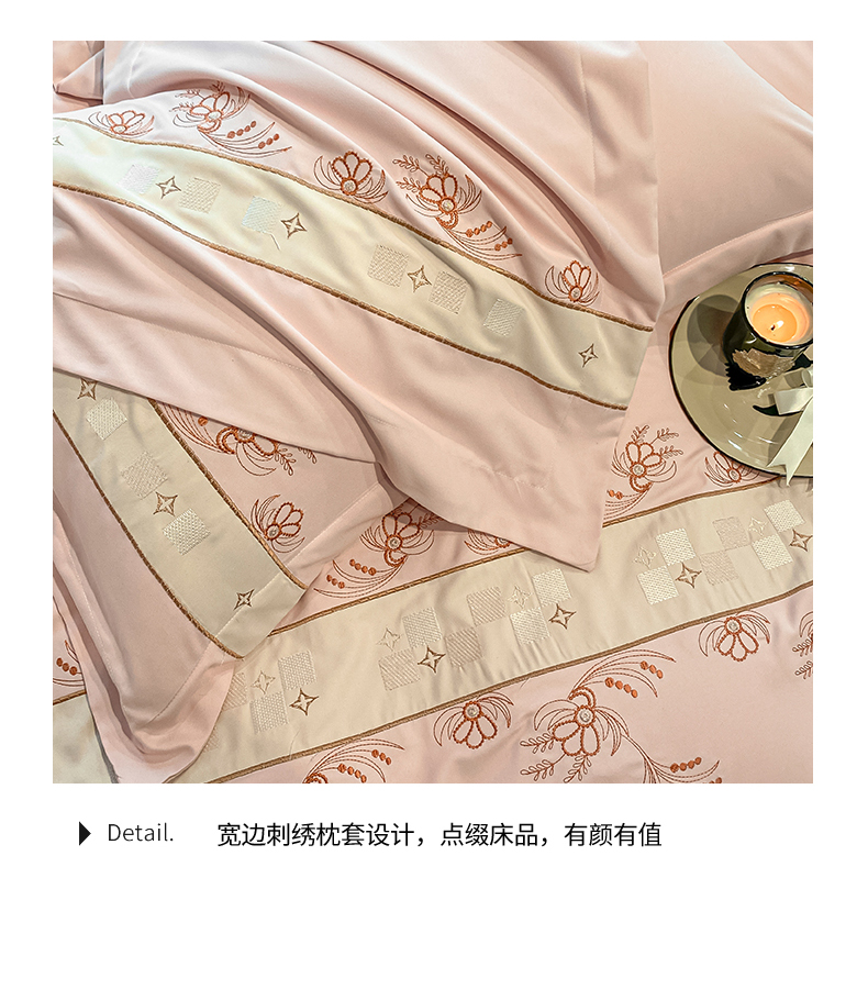 商品名称:丝印良品 2023新款秋冬保暖锦绣棉简约绣花艾莎系列四件套 艾莎-藕粉