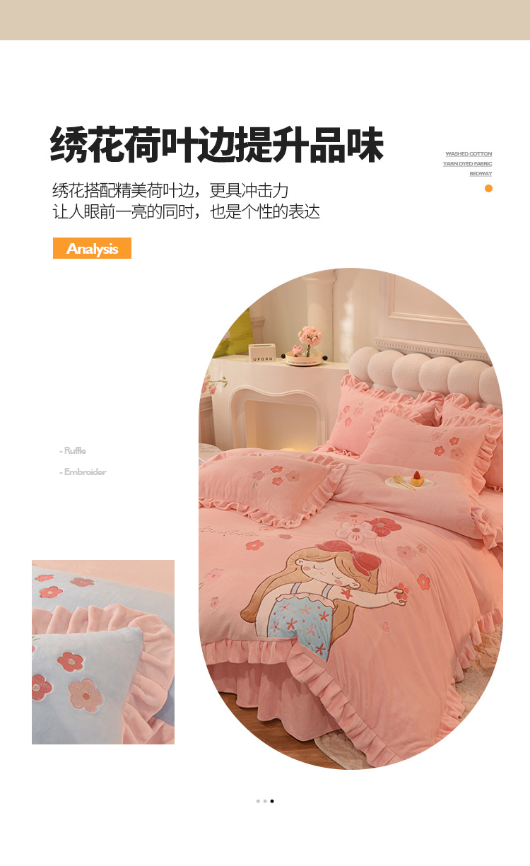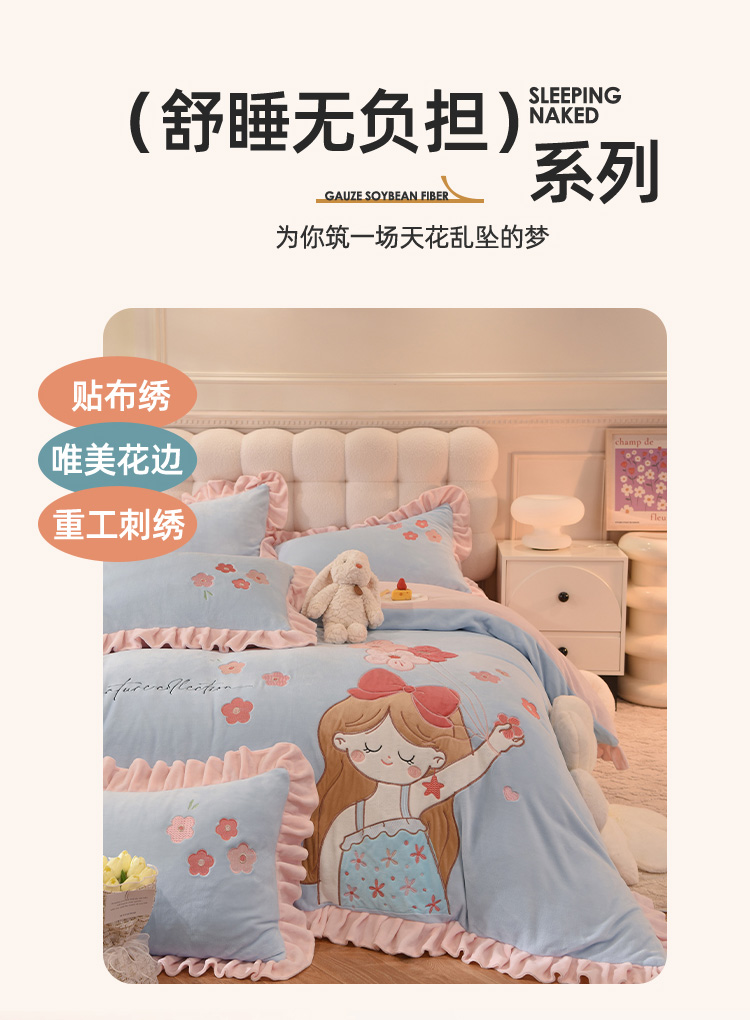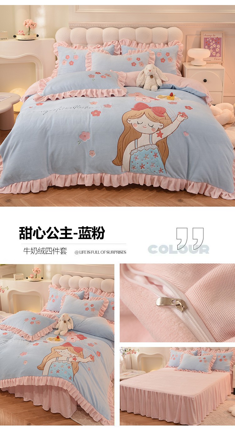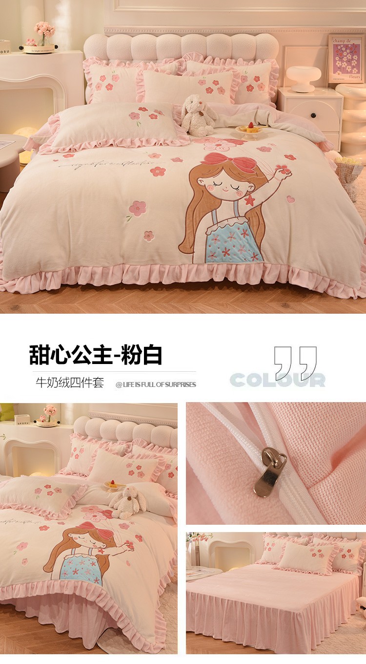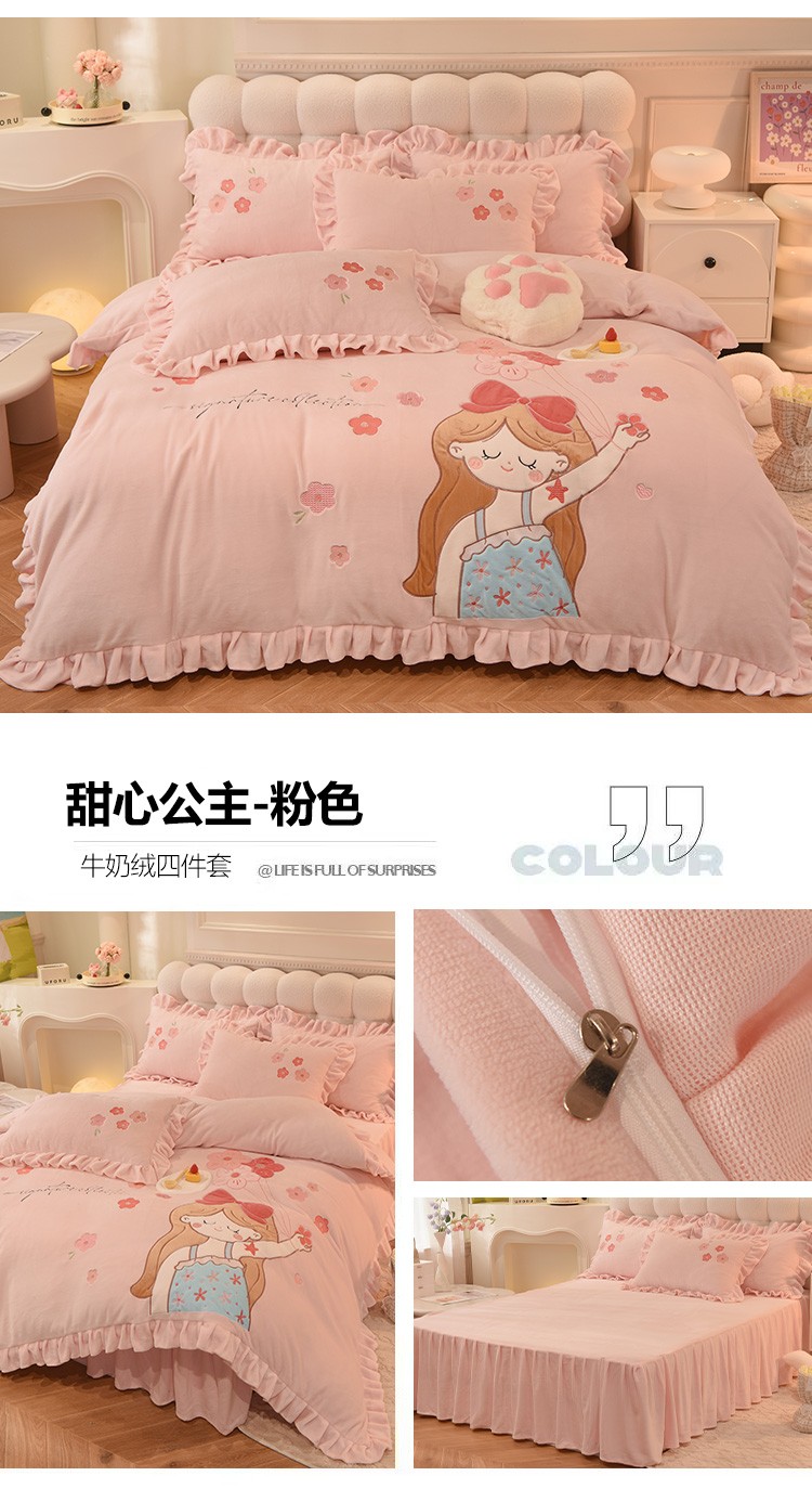 (总)欧冠 2023新款高档贴布绣甜心公主牛奶绒四件套
