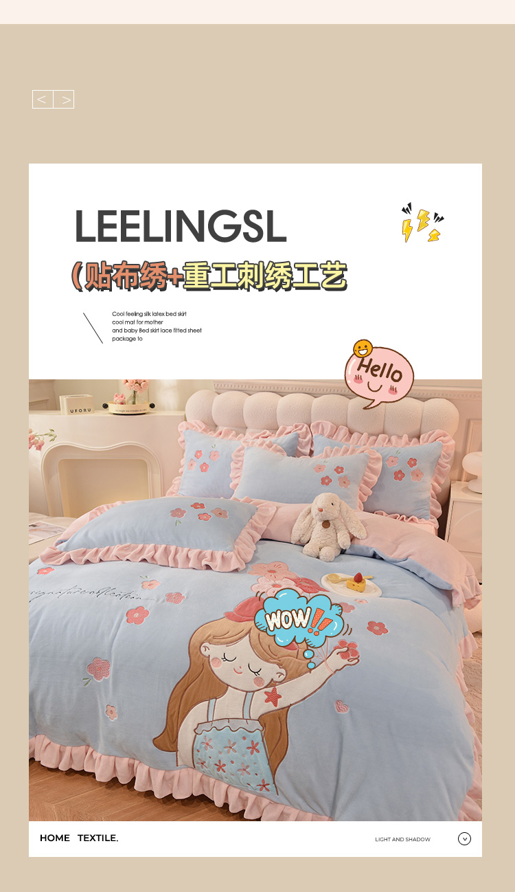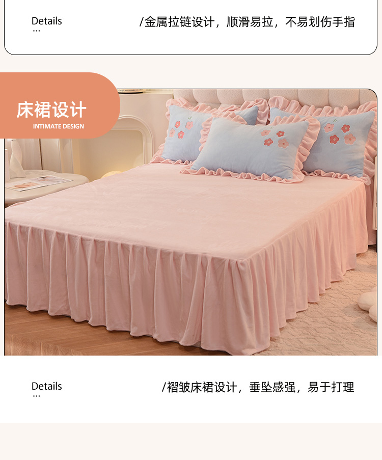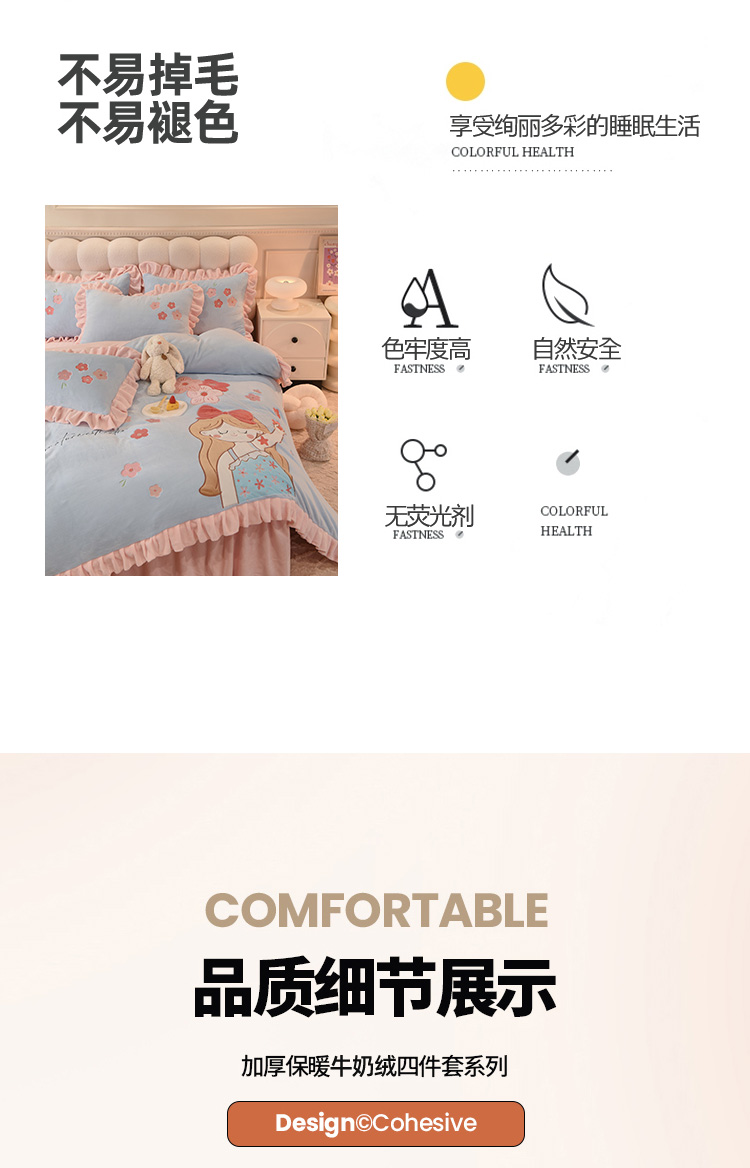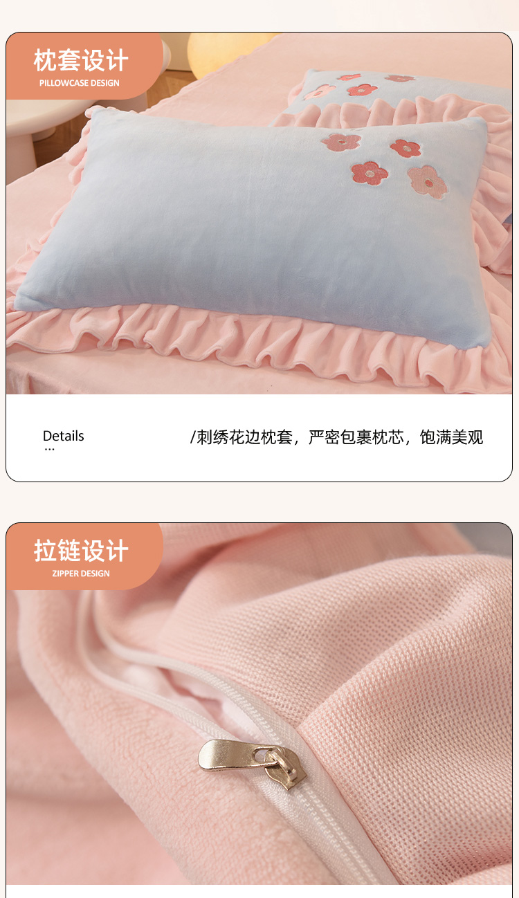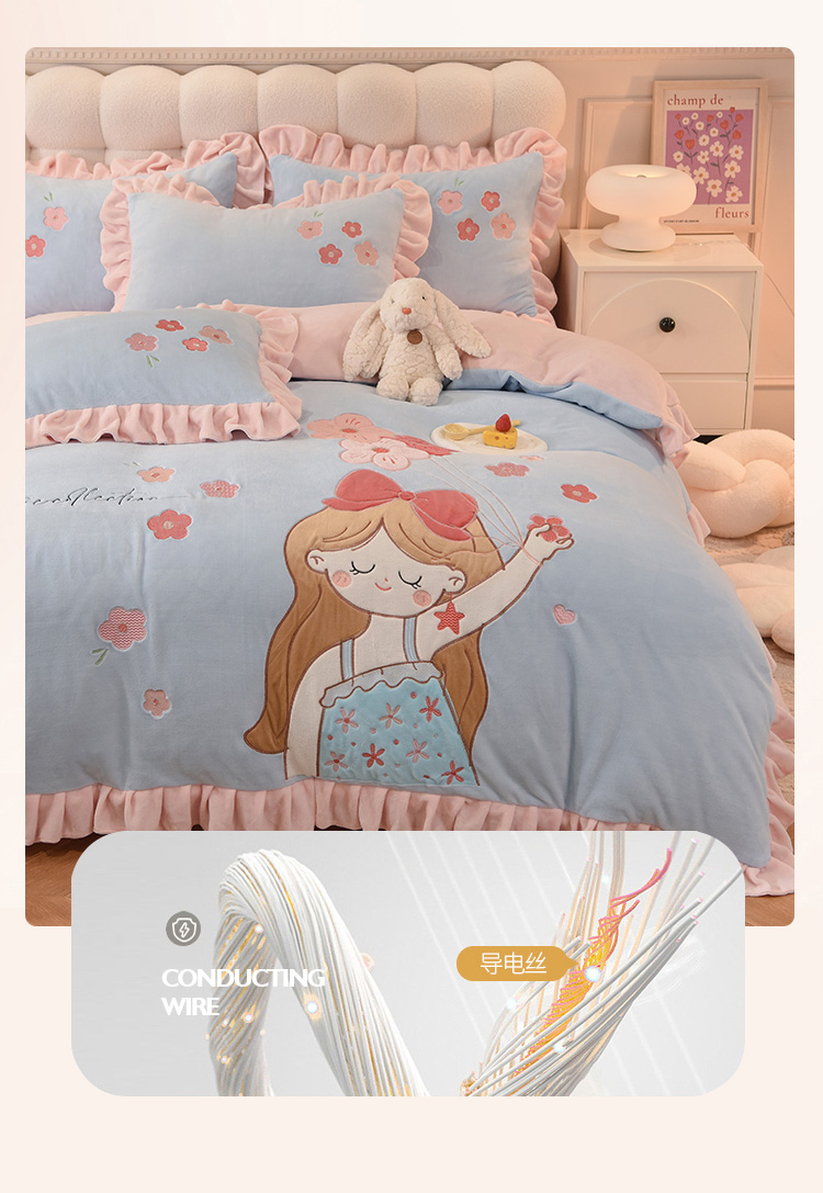 (总)欧冠 2023新款高档贴布绣甜心公主牛奶绒四件套