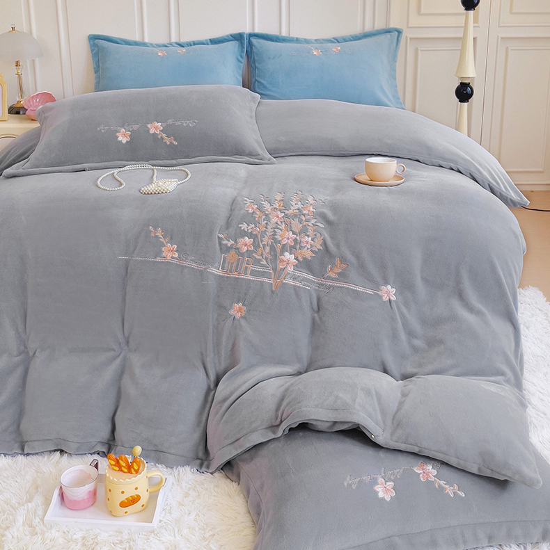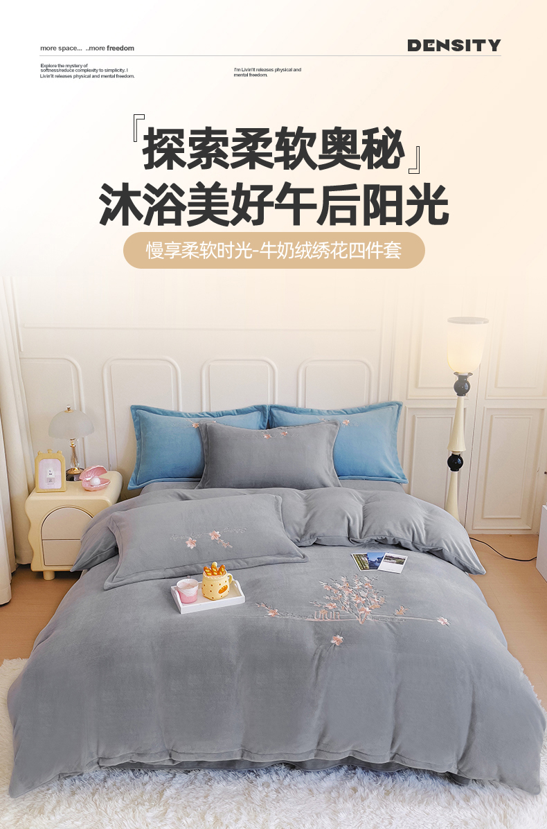 (总)云锦2023秋冬新品全棉磨毛绣花四件套缦芯,缦芯粉,缦芯灰,缦芯橘,缦芯蓝,缦芯紫