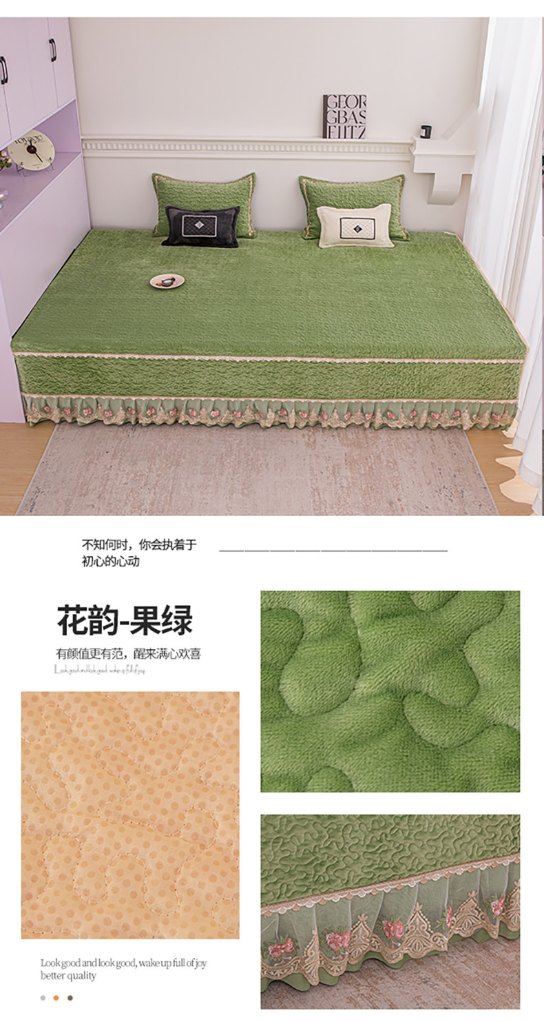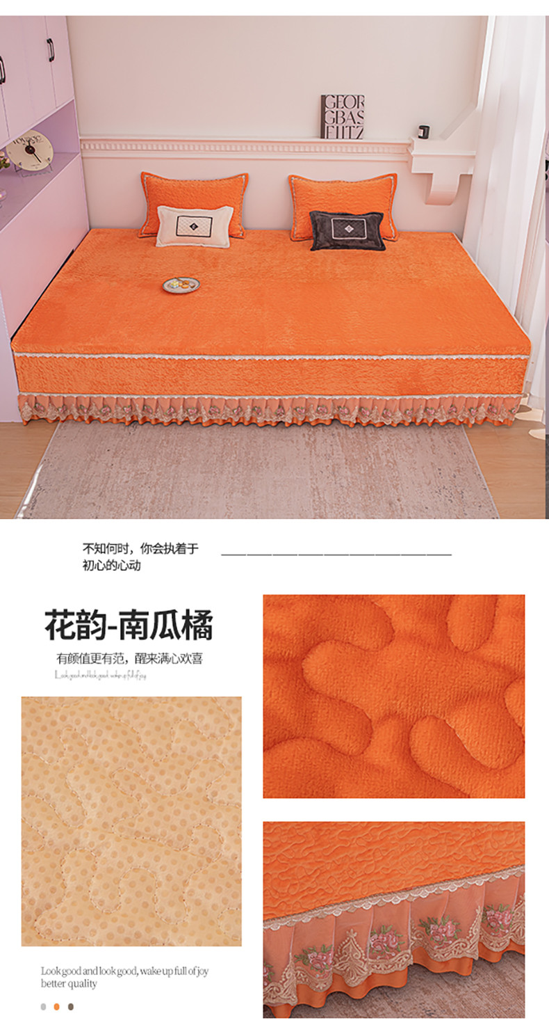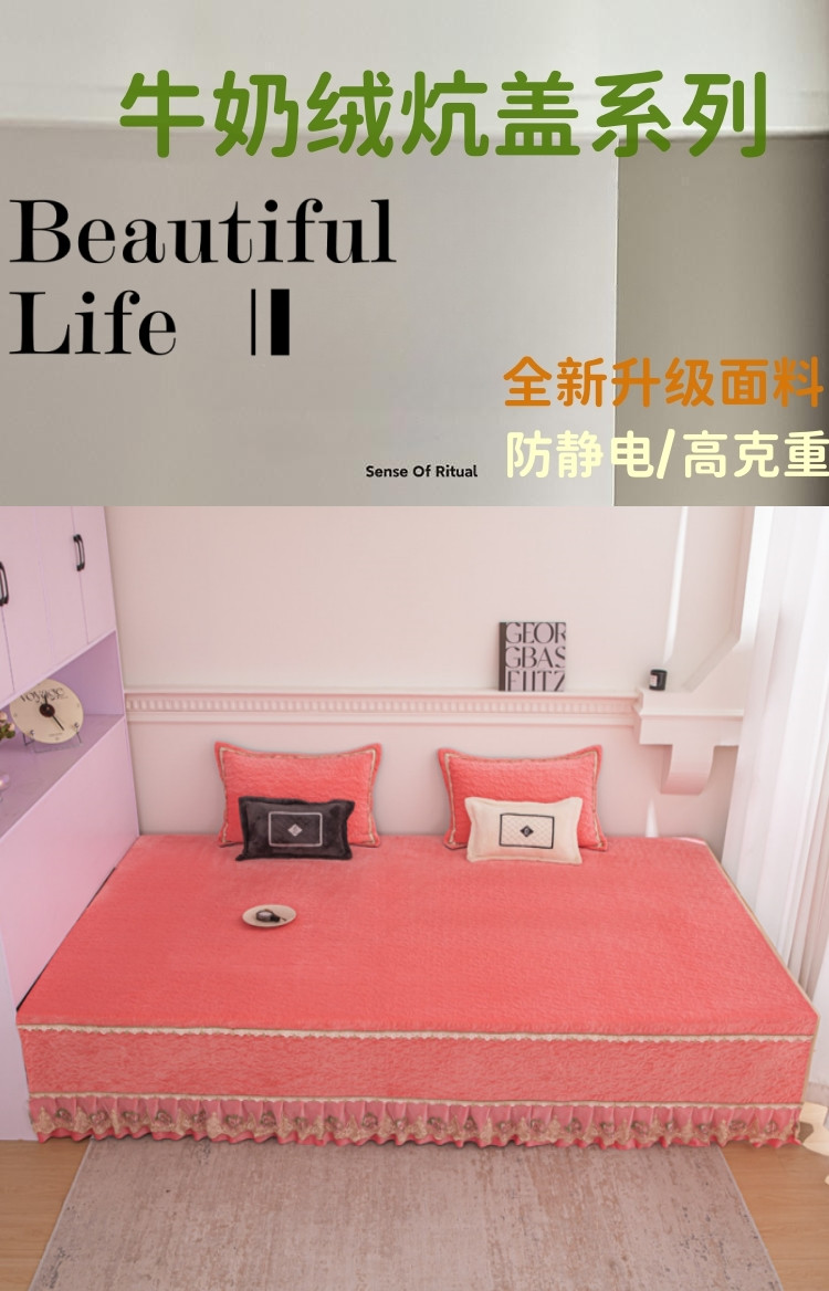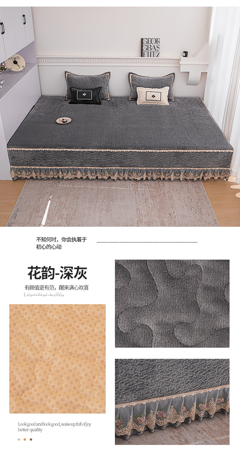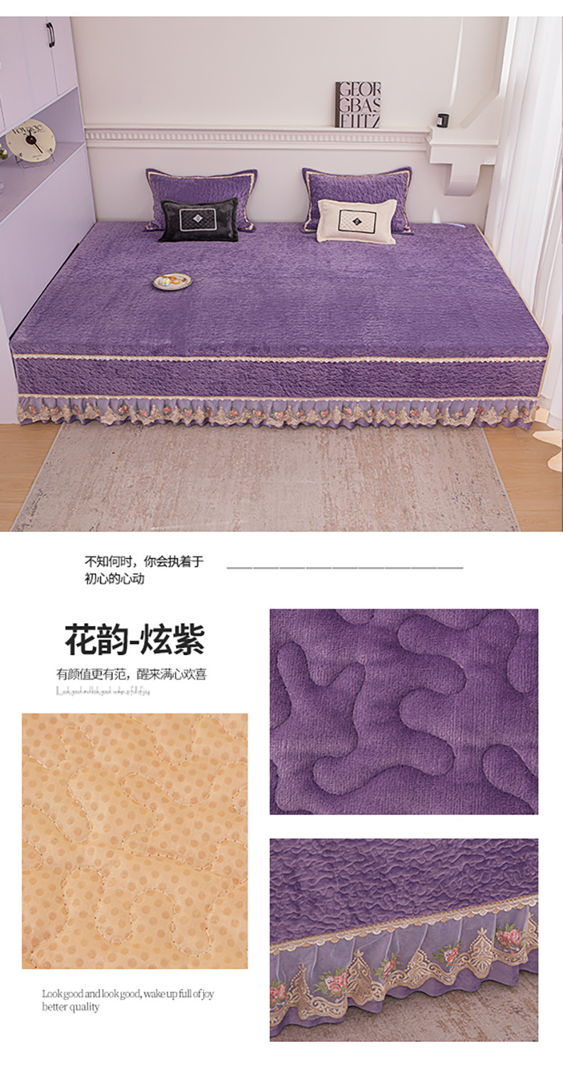 商品名称:总 手艺人 2025新款牛奶绒炕盖榻榻米炕垫素色蕾丝边K315-K323