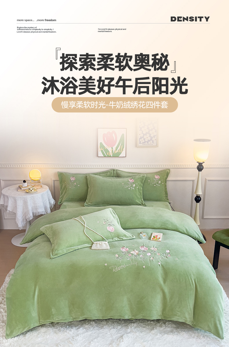 (总)云锦家居 2025新款秋冬50双股磨毛提花四件套,繁花-嫩青,静水-粉玉,雅韵-粉白,静水-咖灰