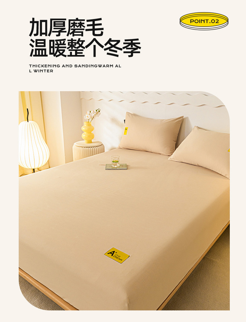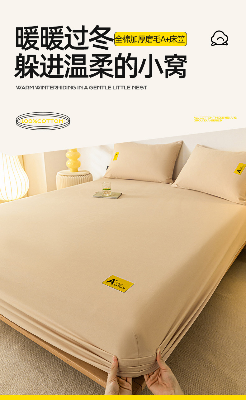蓝米卡夫 2024秋冬全棉加厚磨毛A+单床笠三件套 A+卡其CL