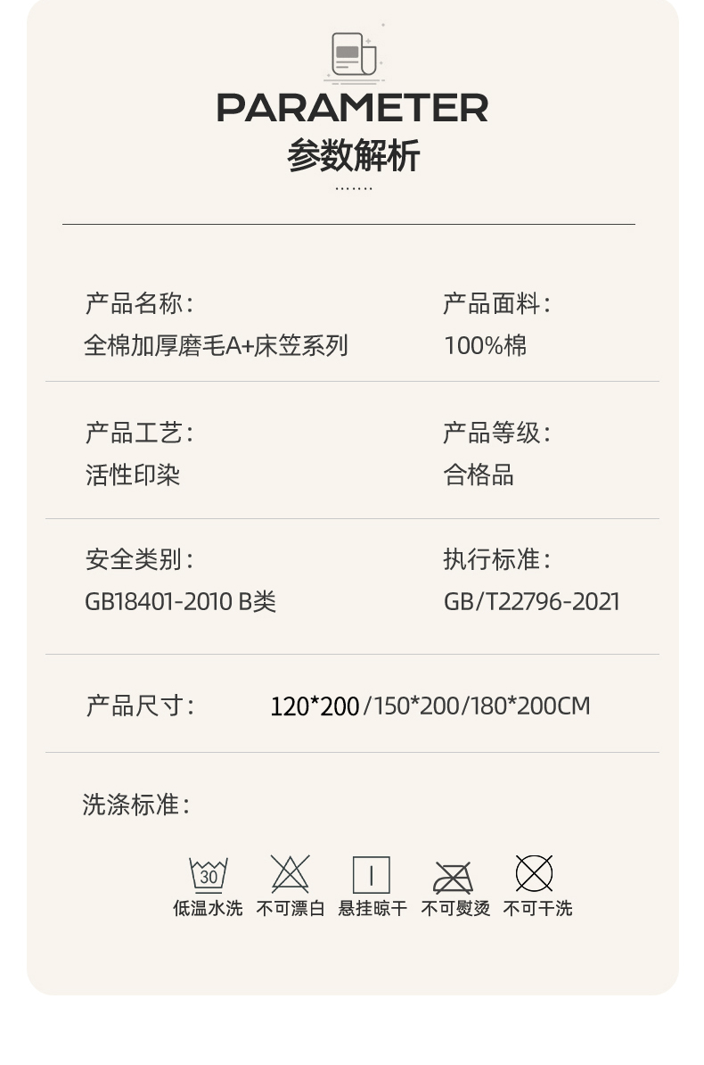 当前位置: 91家纺网 > 商品网购 > 床上用品 > 床笠 > 蓝米卡夫 2024秋冬全棉加厚磨毛A+单床笠三件套 A+卡其CL