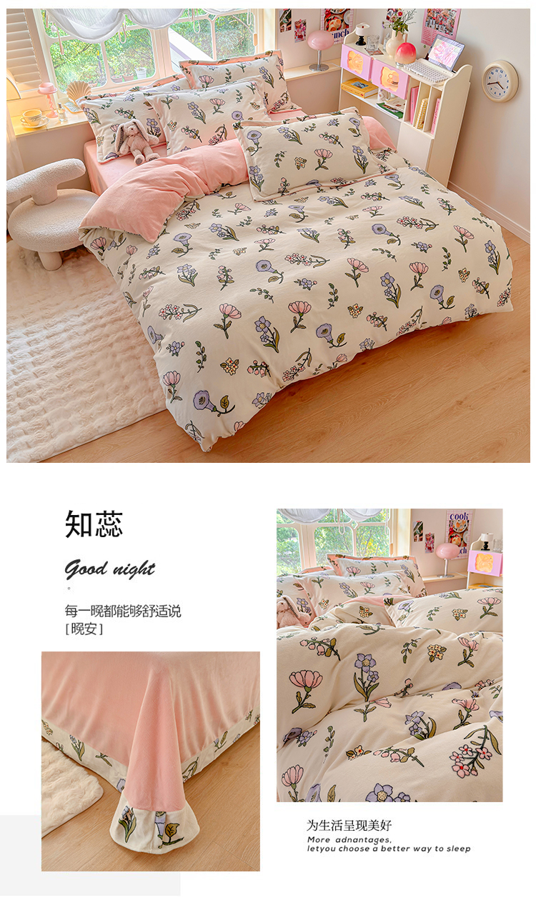 (总)呗旺鹿 2023新款高克重加厚印花牛奶绒四件套直播
