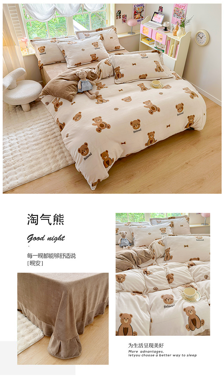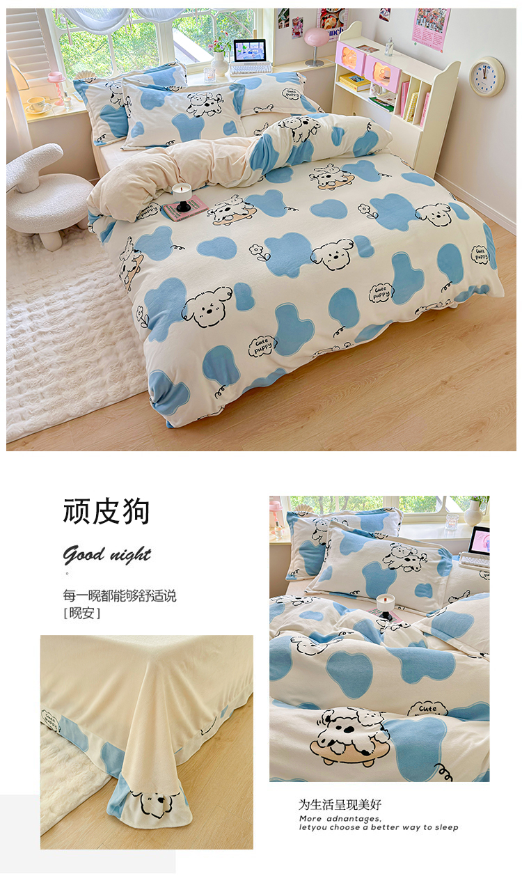 (总)呗旺鹿 2025新款A类高克重卡通印花牛奶绒印花四件套,蝴蝶结圆点小狗,开飞机的小熊,猫狗派对,奶油小猫,奶油星星狗,小熊的礼物,信封小熊,音乐小狗