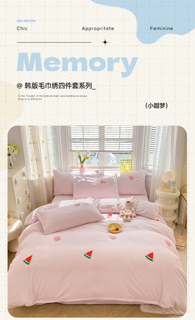 欧冠 2023新款秋冬保暖专版水洗棉麻毛巾绣四件套 西瓜