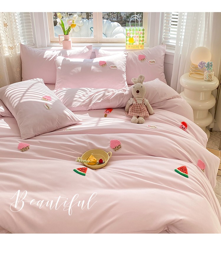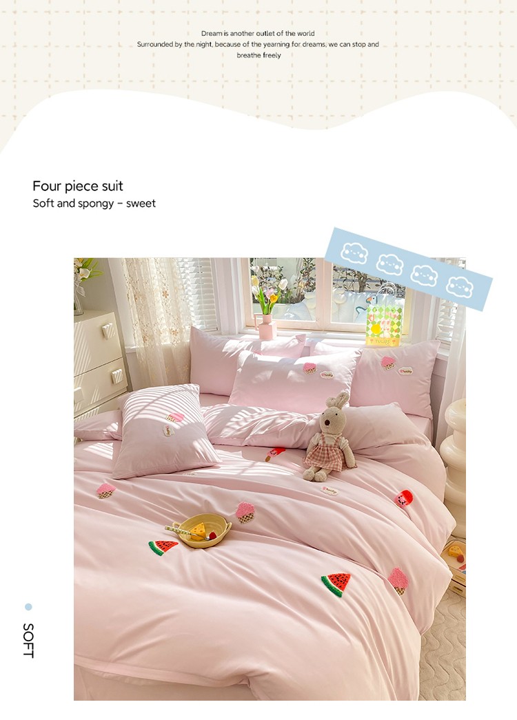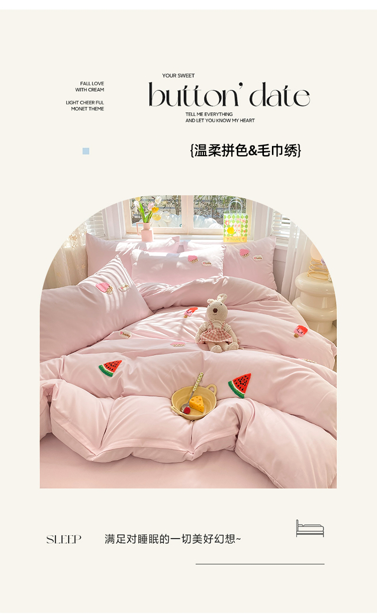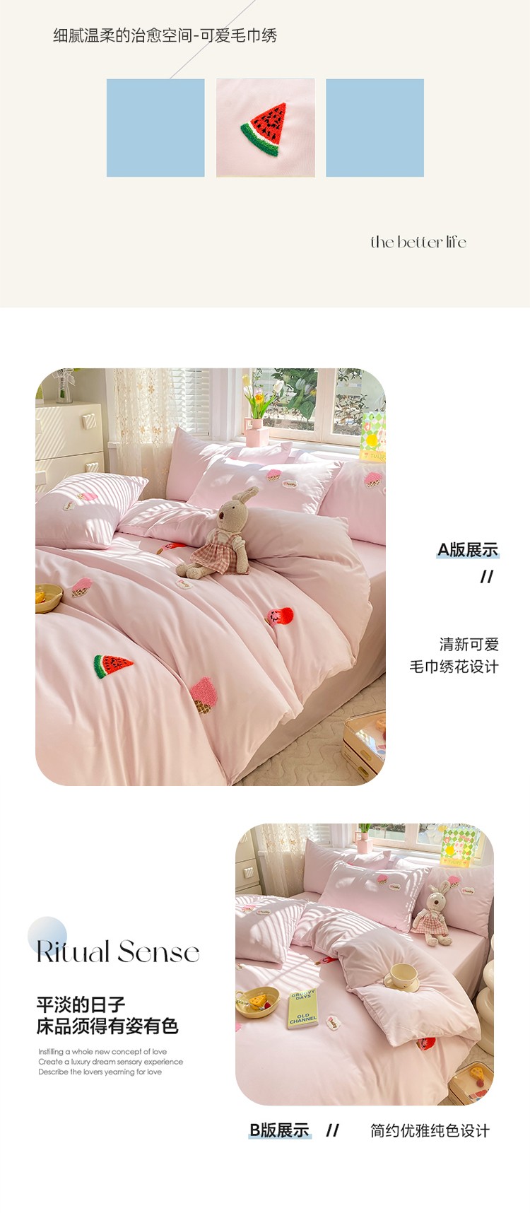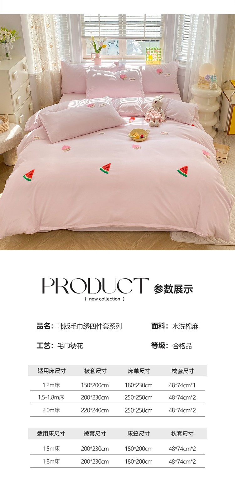 商品名称:欧冠 2023新款秋冬保暖专版水洗棉麻毛巾绣四件套 西瓜