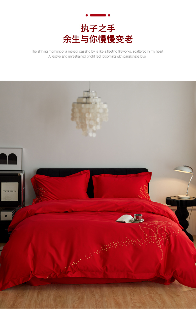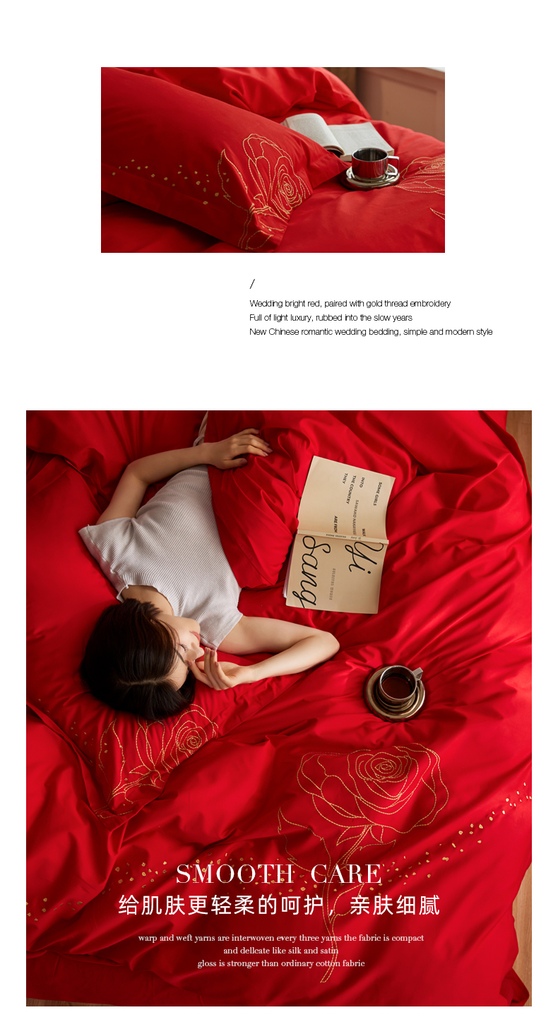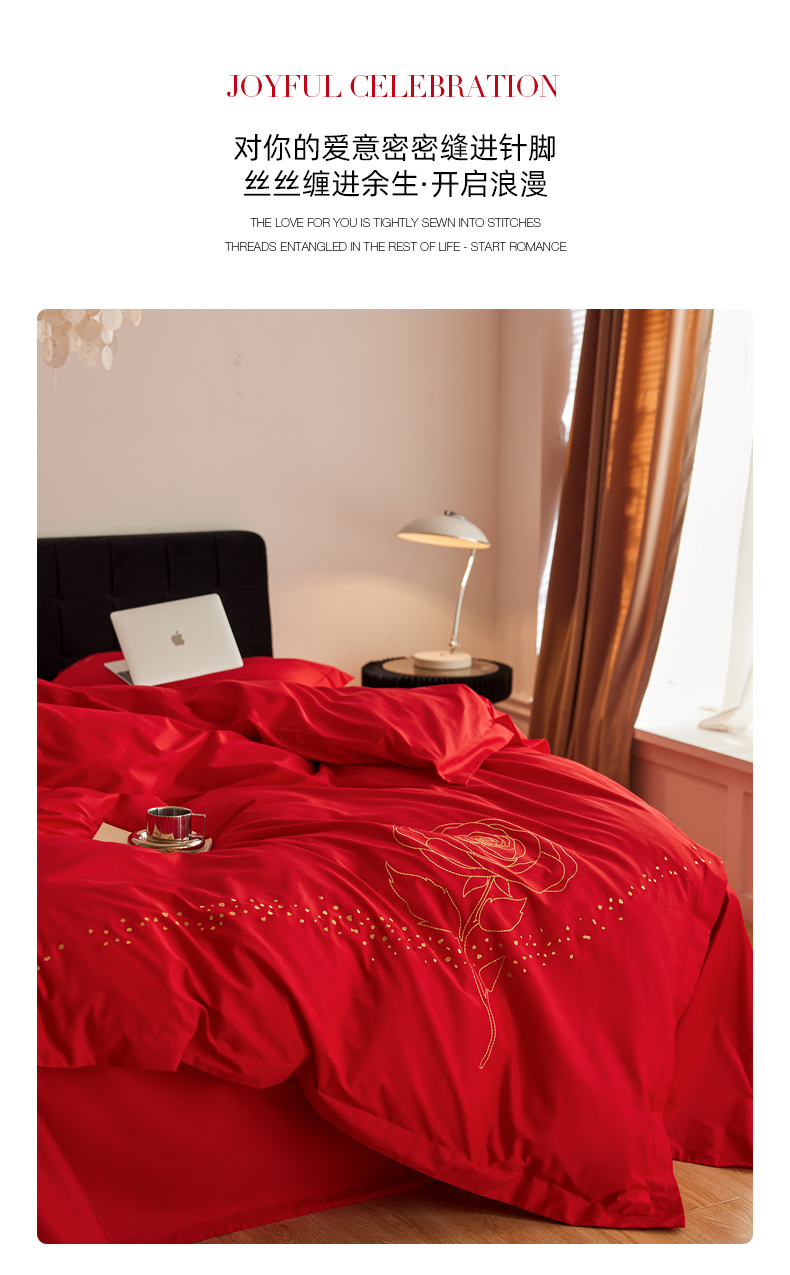 商品名称:千朵森 2024新款新疆长绒棉婚庆刺绣四件套-玫瑰 婚庆红