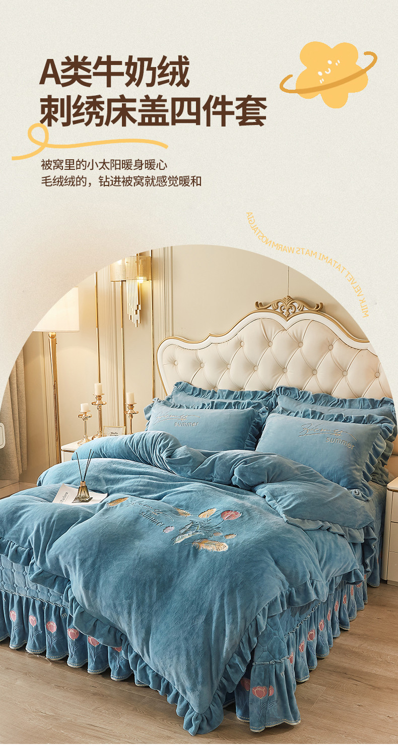 当前位置: 91家纺网 > 商品网购 > 床品套件 > 四件套 > 牛奶绒四件套 > 恒爱 2023新款A类牛奶绒羽毛床盖四件套 羽毛-水光兰