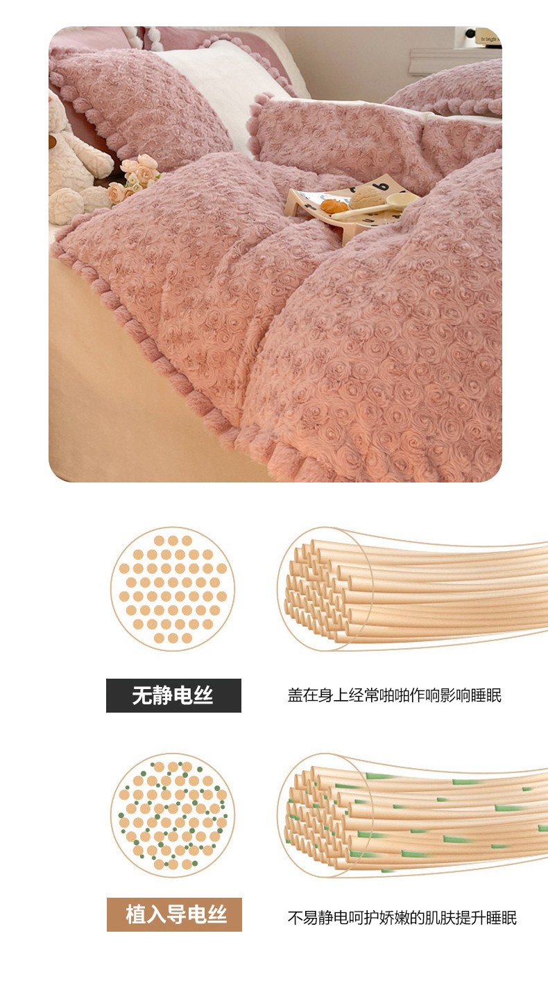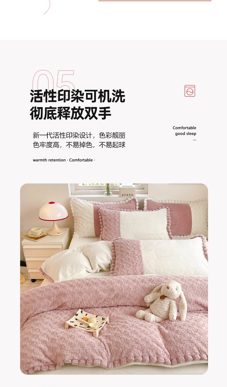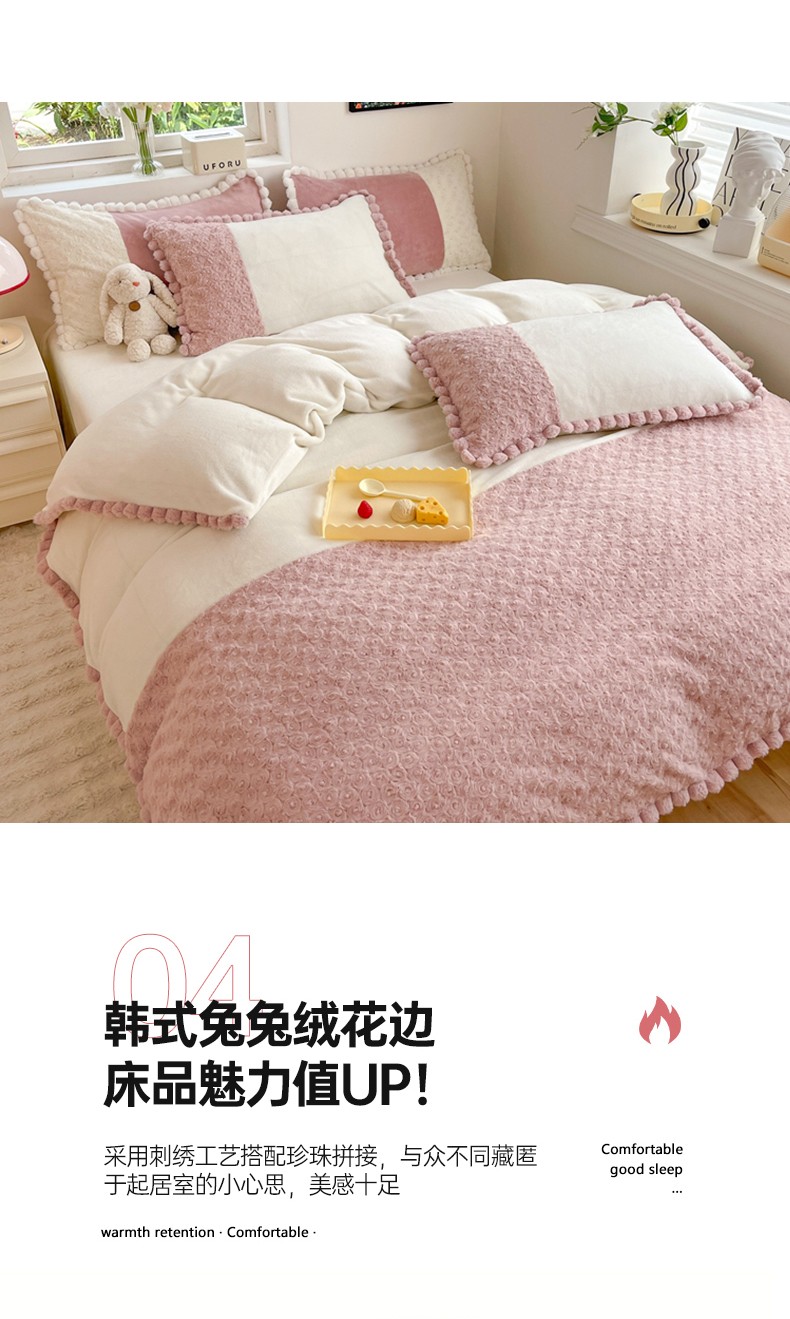 商品名称:艾米家居 2023新款秋冬懒兔玫瑰绒牛奶绒四件套 白色