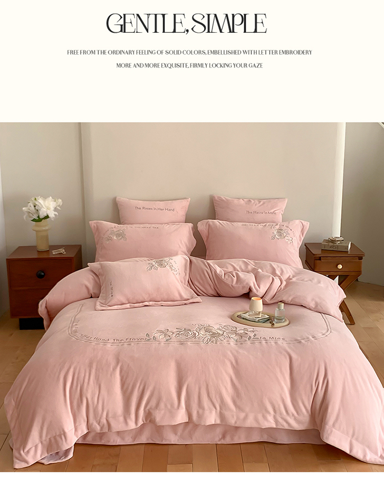 名品优仓 2023新款高克重230g牛奶绒绣花蔓璃系列四件套 樱花粉