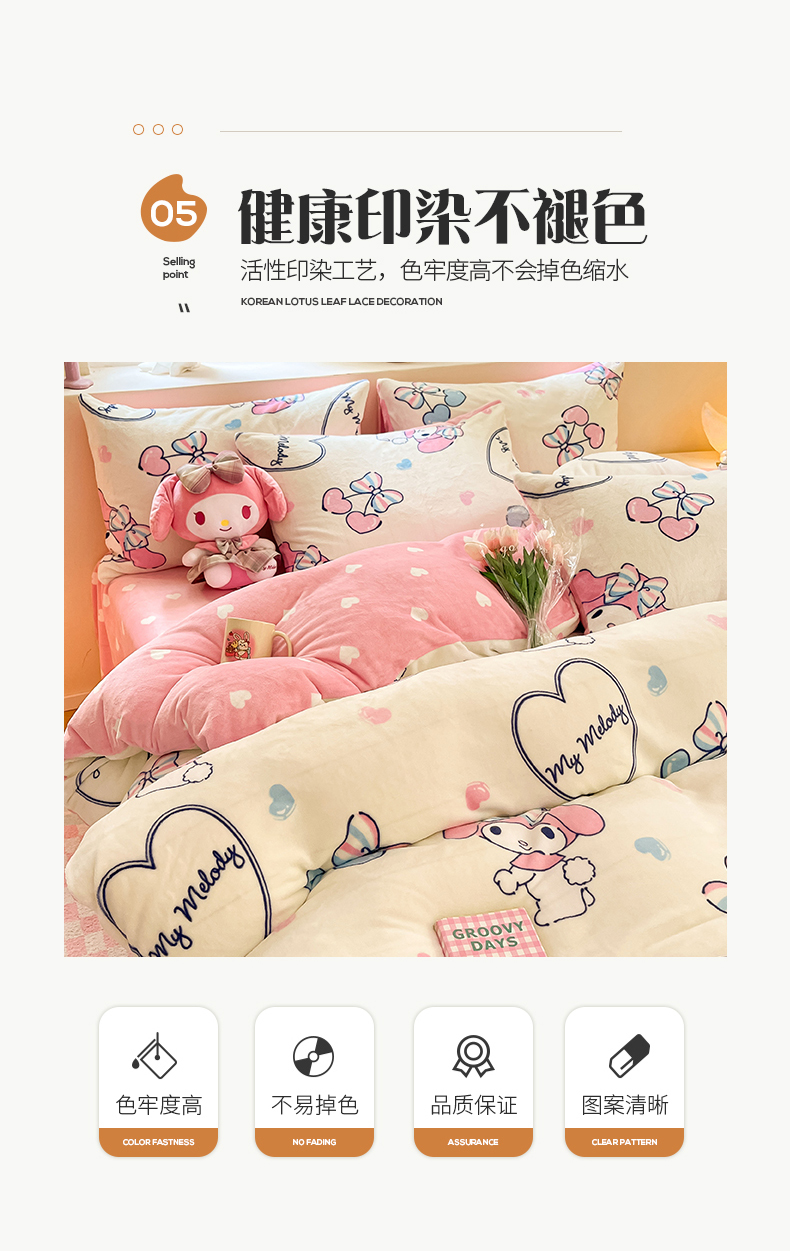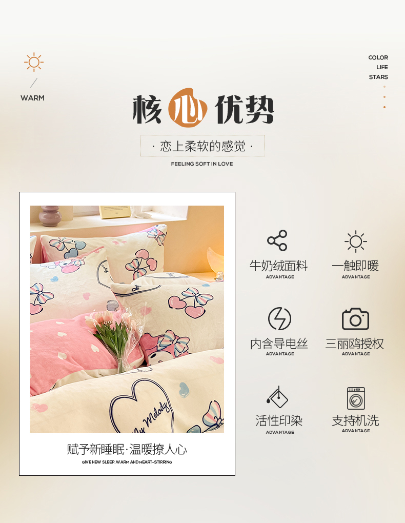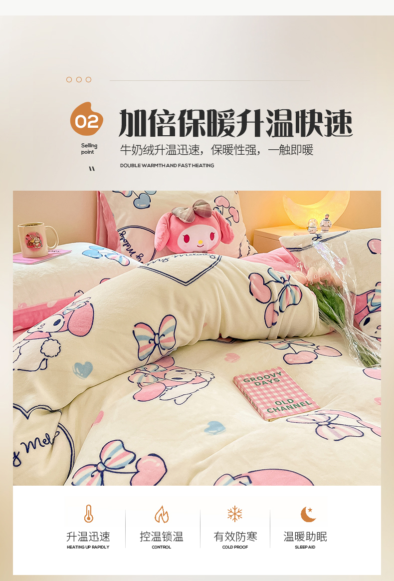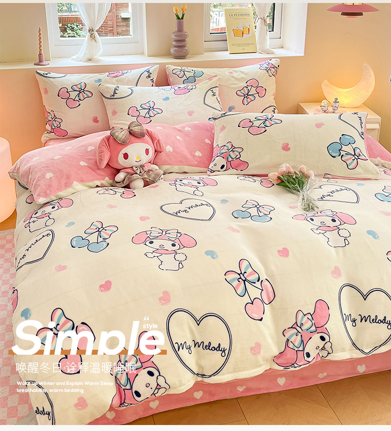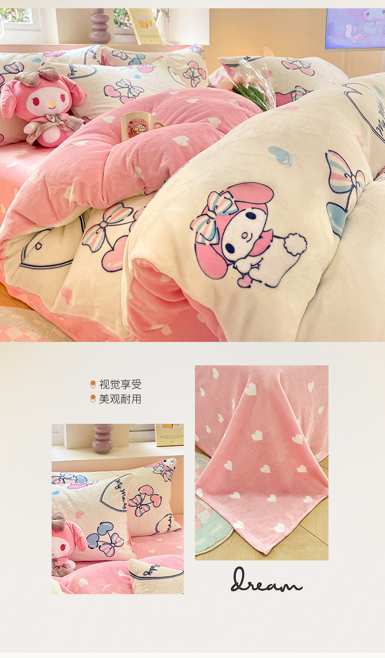 当前位置: 91家纺网 > 商品网购 > 床品套件 > 四件套 > 牛奶绒四件套 > 桃子 2023新款正版三丽鸥授权卡通加厚高克重牛奶绒系列四件套 绒三丽鸥-爱心樱桃美乐蒂