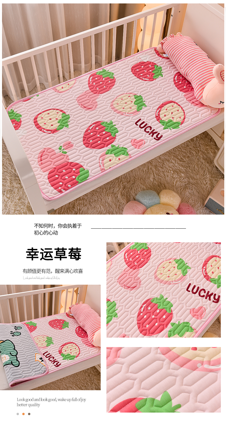 商品名称:床笠人家 2025新款A棉B绒-双面防水护理垫儿童床 幸运草莓