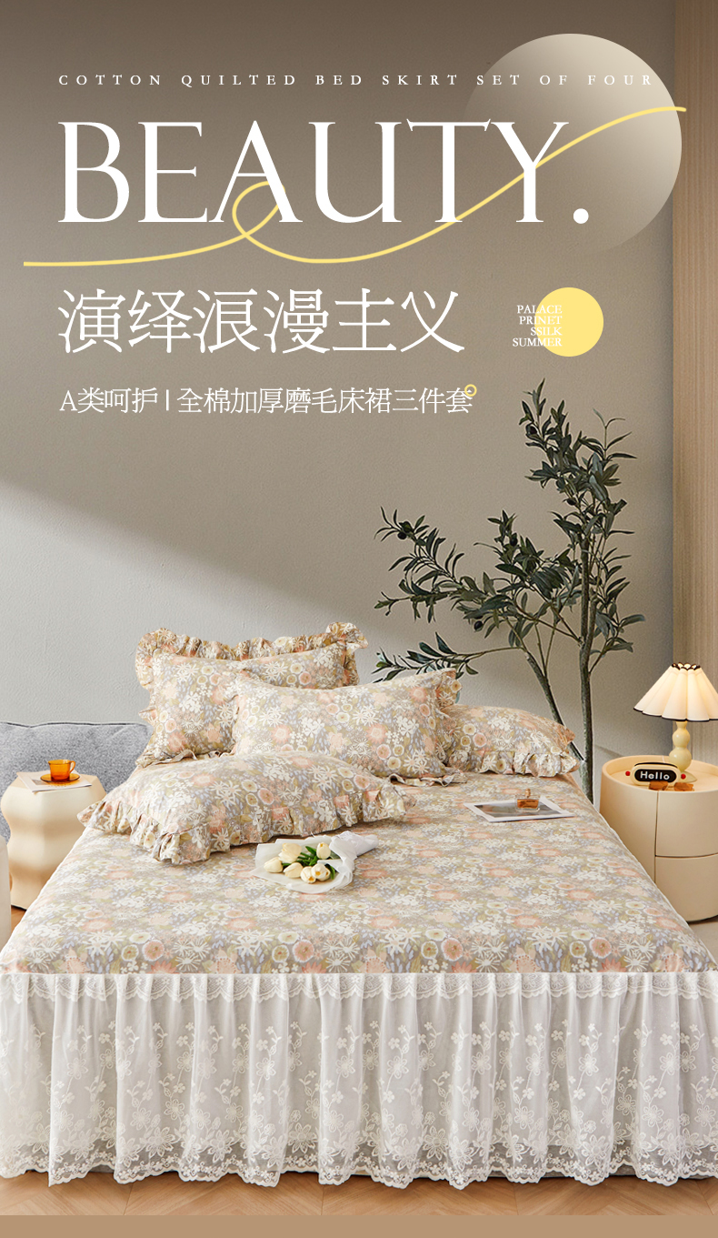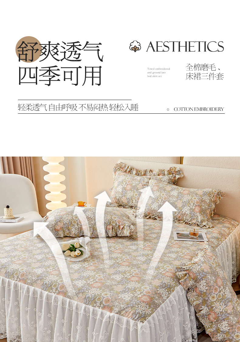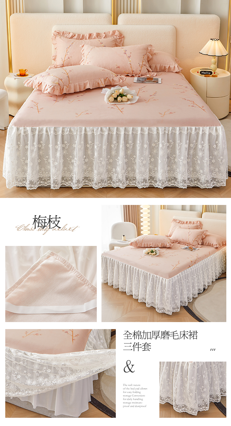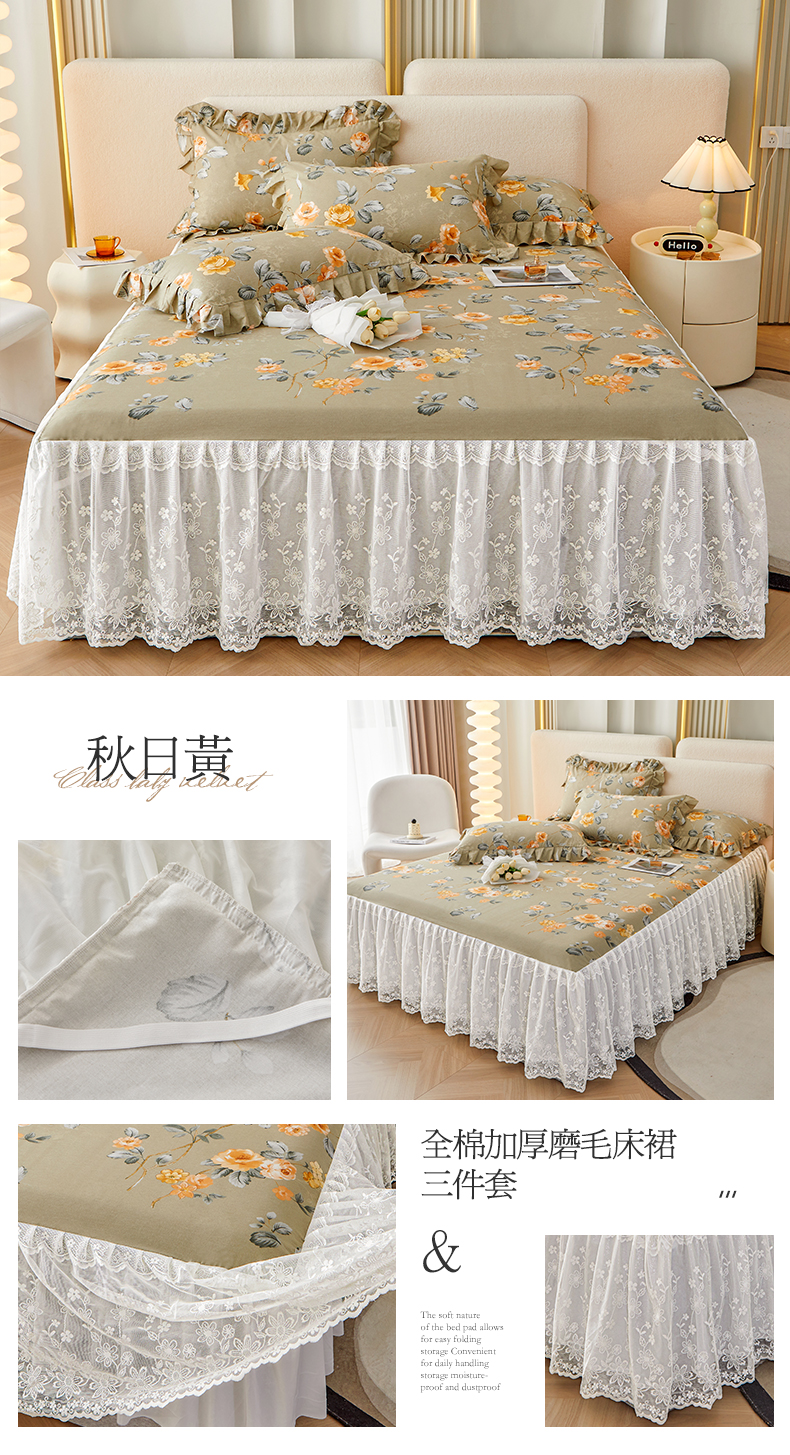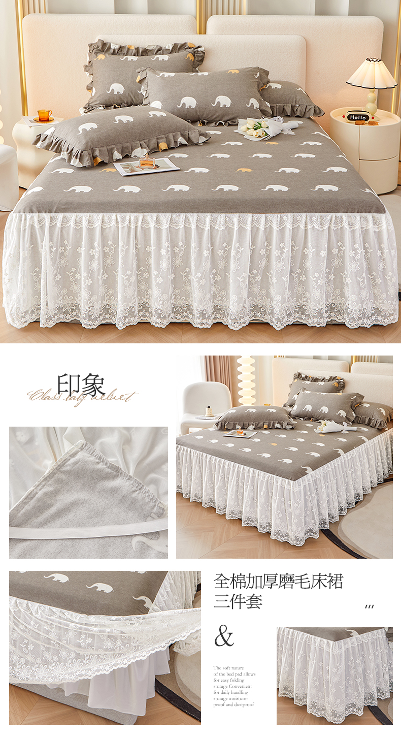 (总)宜凡家纺 2023新款全棉加厚磨印花毛床裙三件套