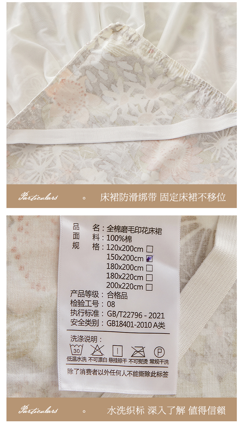 商品名称:(总)宜凡家纺 2023新款全棉加厚磨印花毛床裙三件套