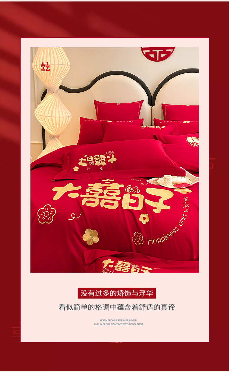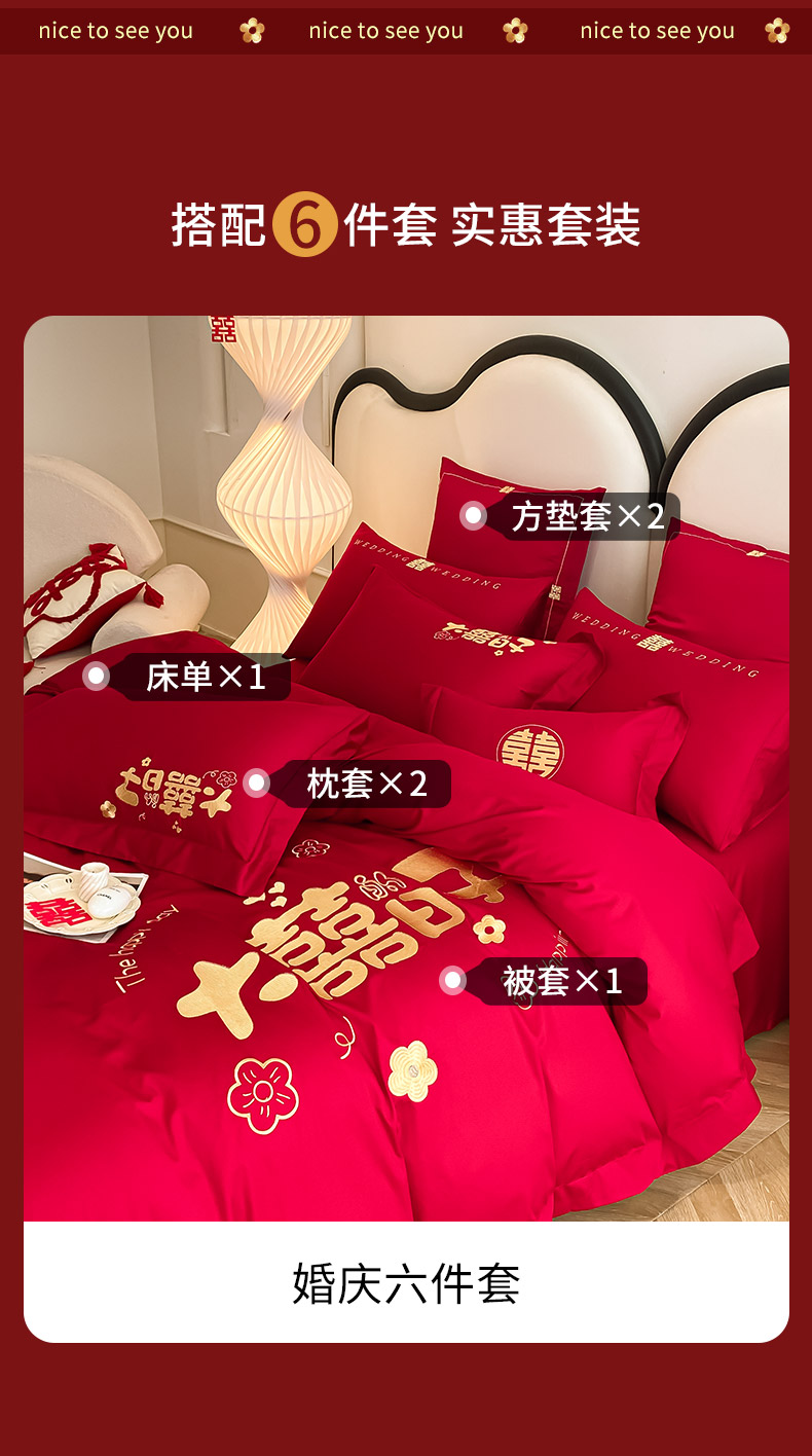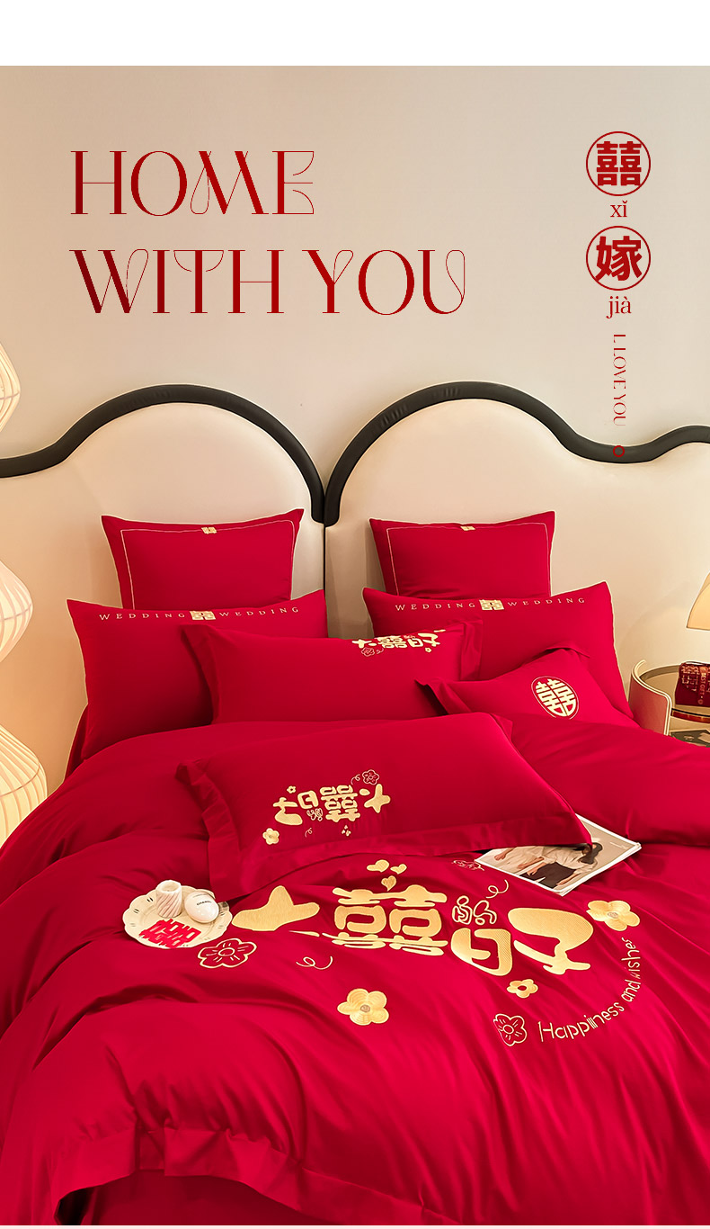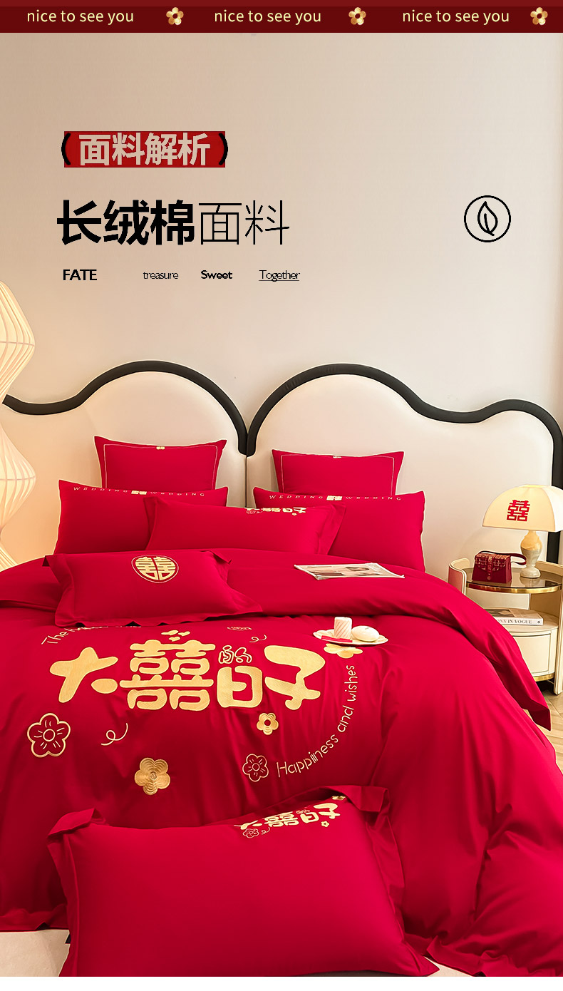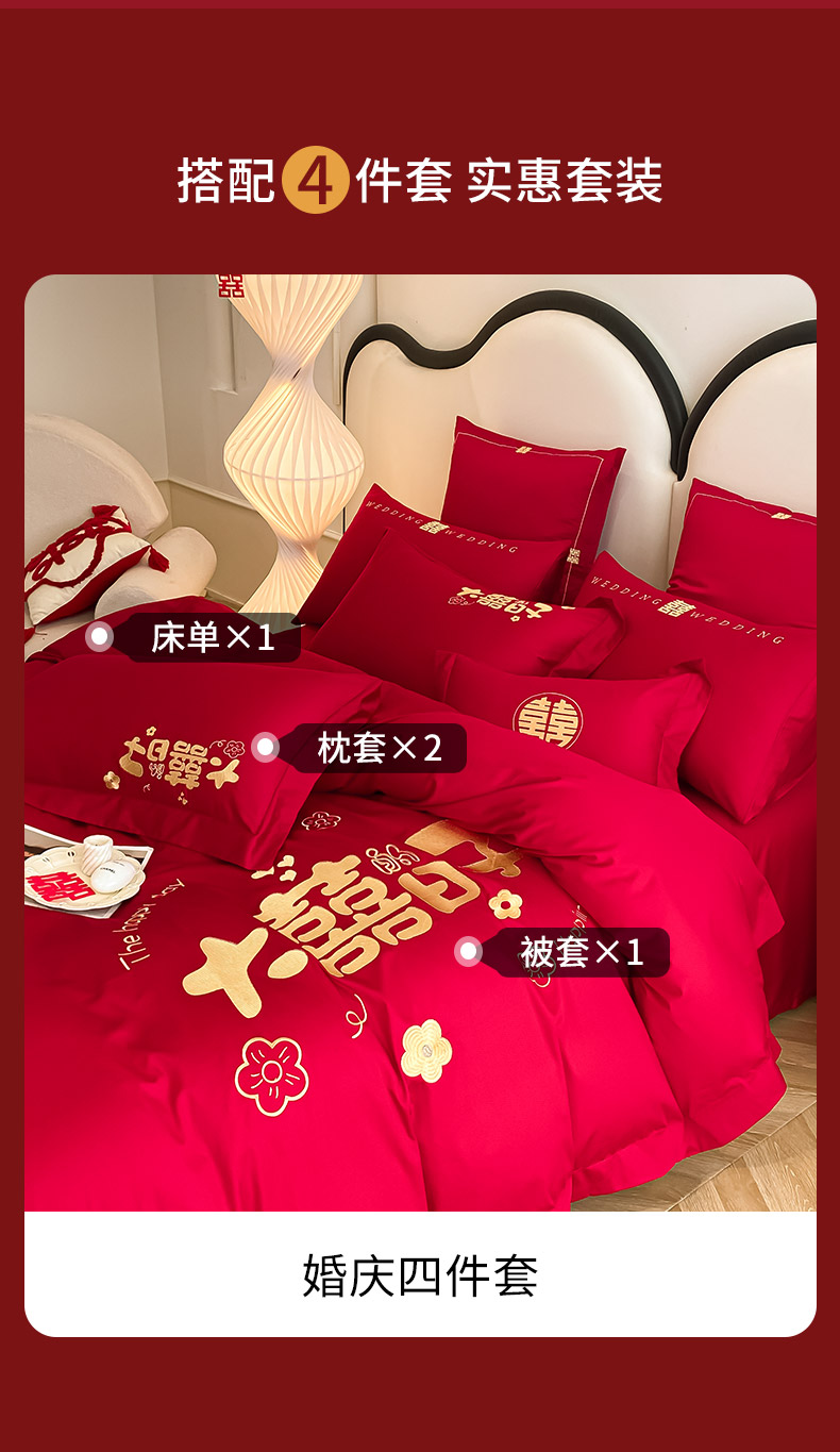 【婚庆爆款】100支长绒棉四件套全棉纯棉刺绣床单被套红色结婚床上用品,苹安喜乐-喜庆红,苹安喜乐-新妍玉,欢喜余生-喜庆红,欢喜余生-新妍玉