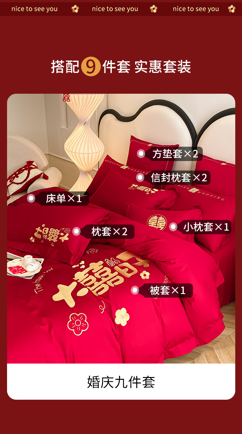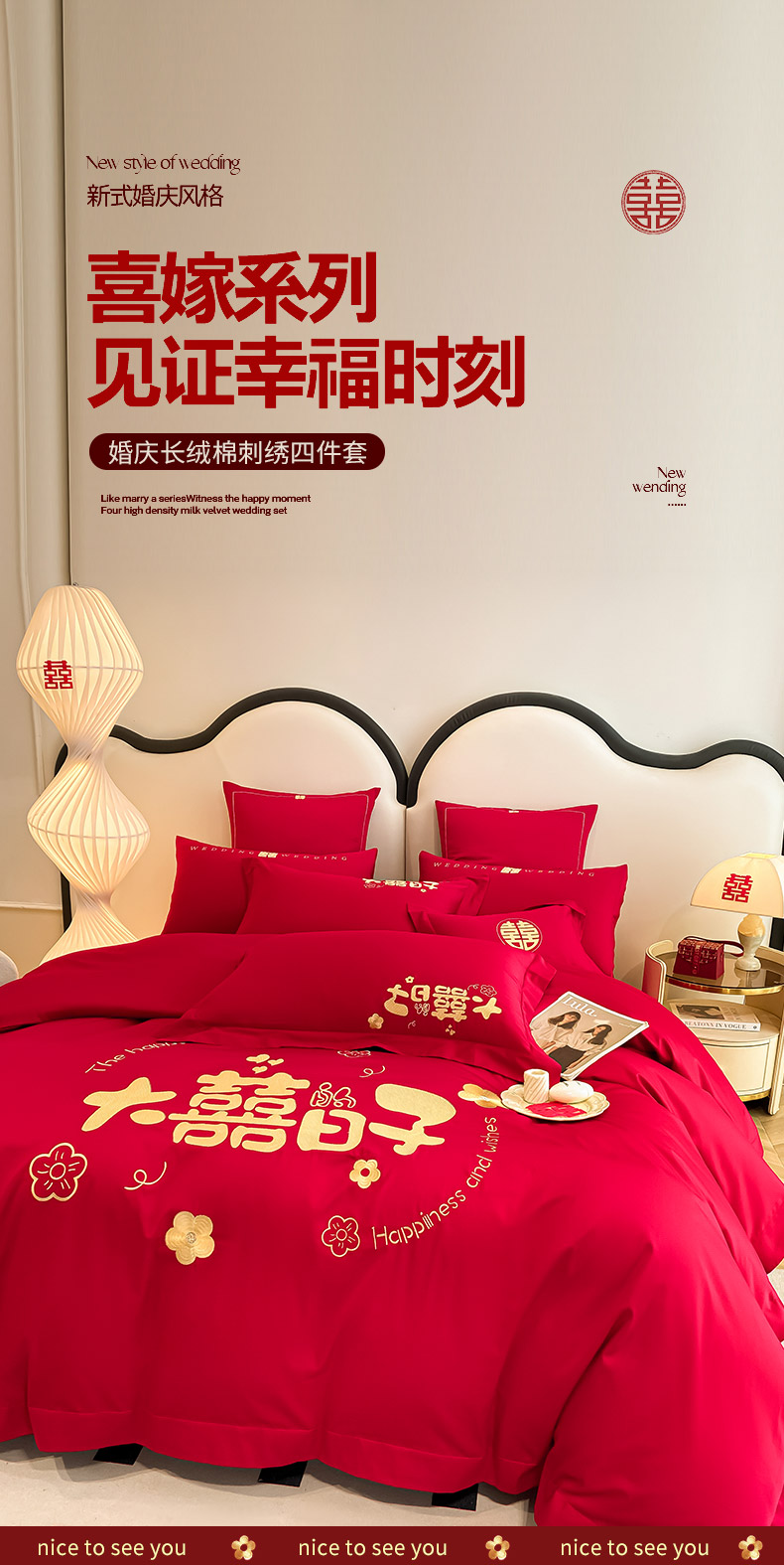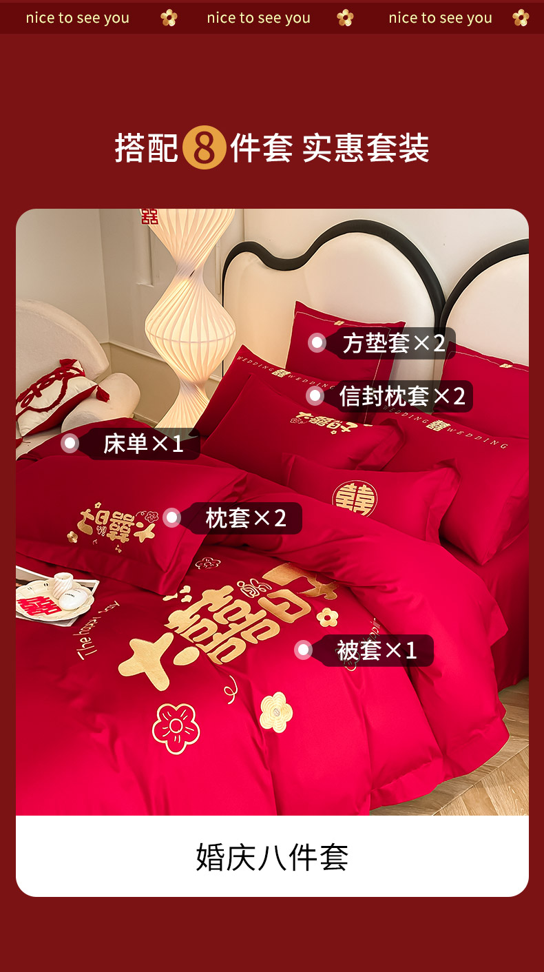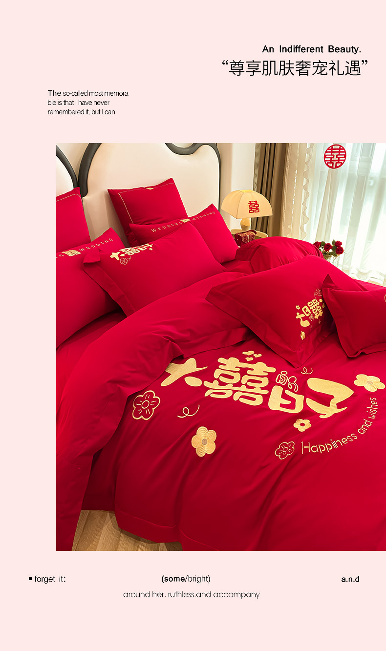 【婚庆爆款】100支长绒棉四件套全棉纯棉刺绣床单被套红色结婚床上用品,苹安喜乐-喜庆红,苹安喜乐-新妍玉,欢喜余生-喜庆红,欢喜余生-新妍玉