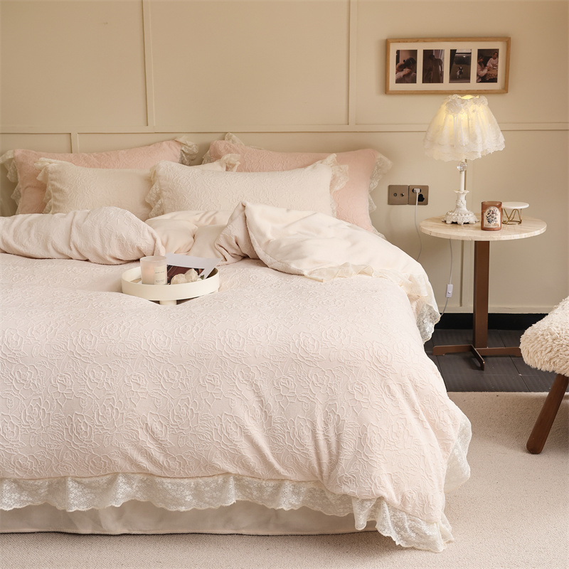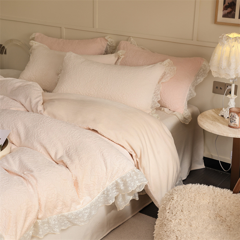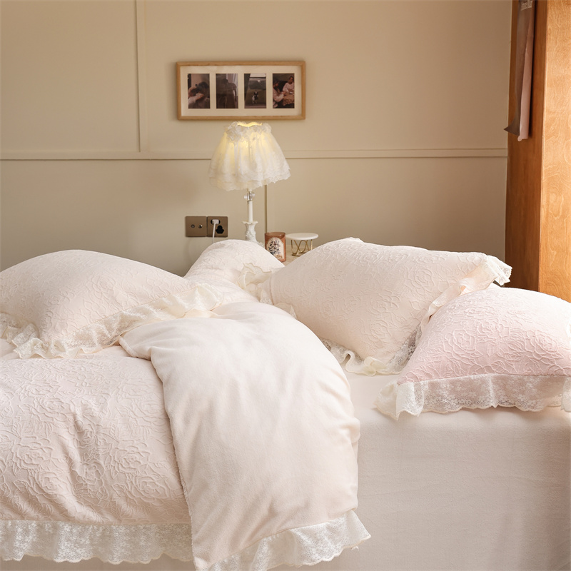 柚子YOUTH 2023新款雪尼尔花边雕花绒四件套 奔赴 白