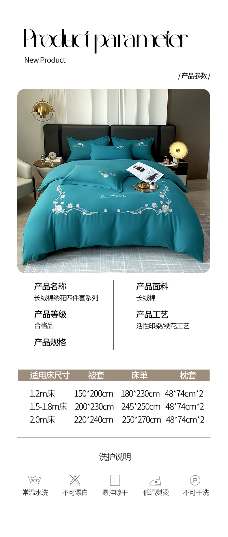 商品名称:帛缔思 2023新款轻奢长绒棉绣花四件套-古典韵味 古典韵味-湖绿