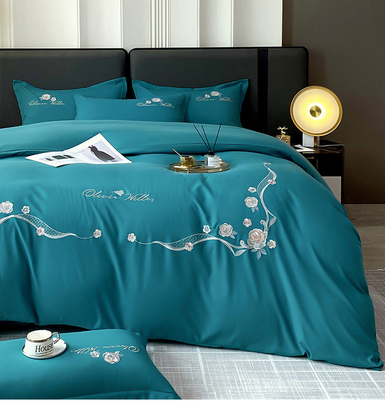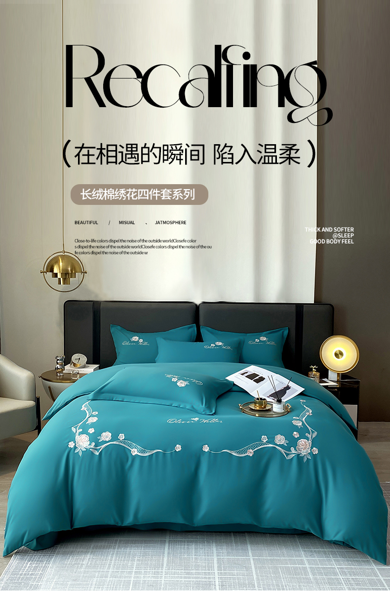 帛缔思 2023新款轻奢长绒棉绣花四件套-古典韵味 古典韵味-湖绿
